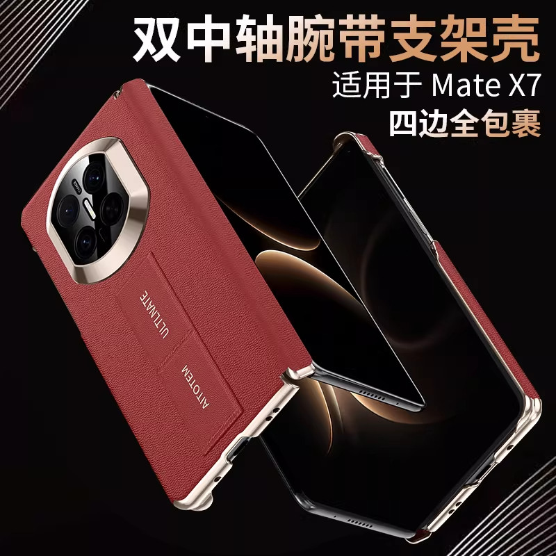 腕带支架适用华为MateX7典藏版手机壳新款matex6双中轴单后壳X5镜头全包超薄防摔真皮保护套x3高级感男女外壳