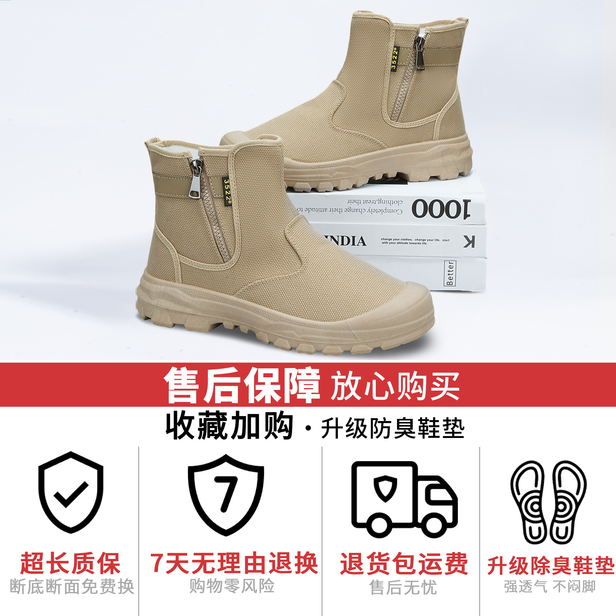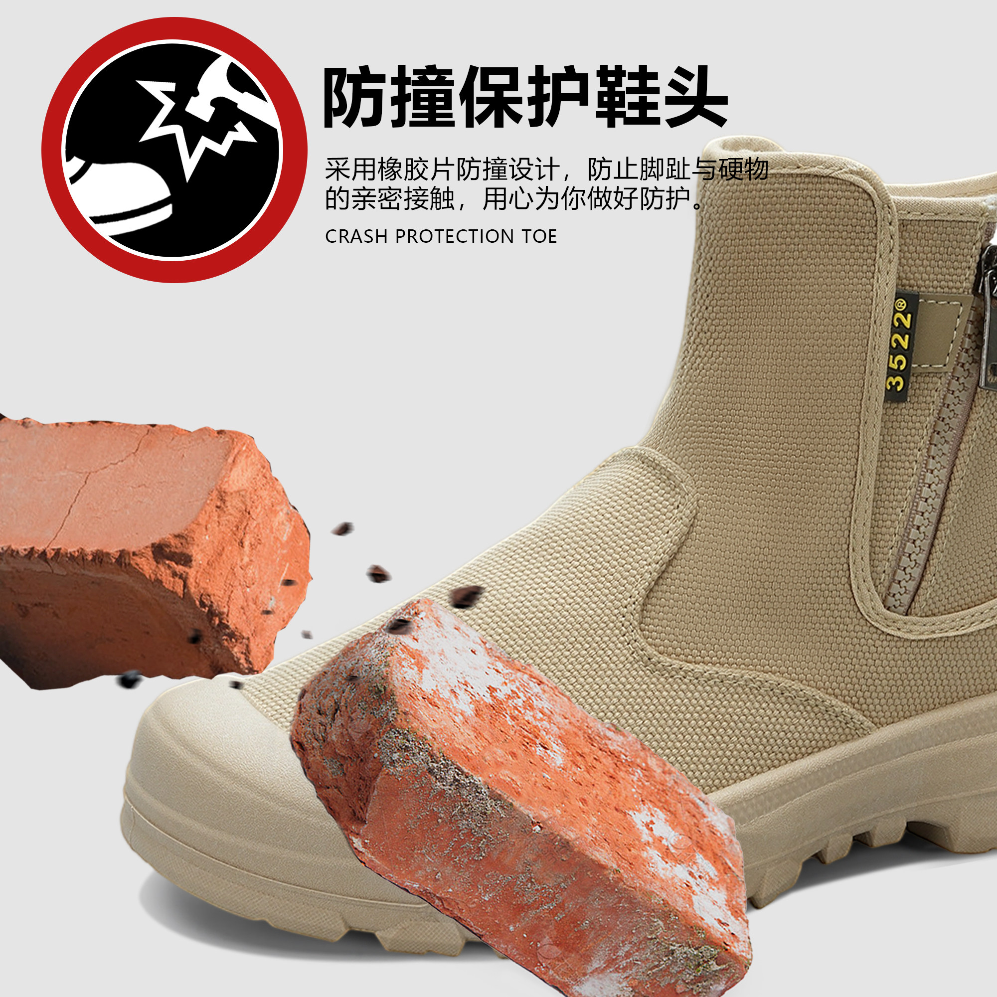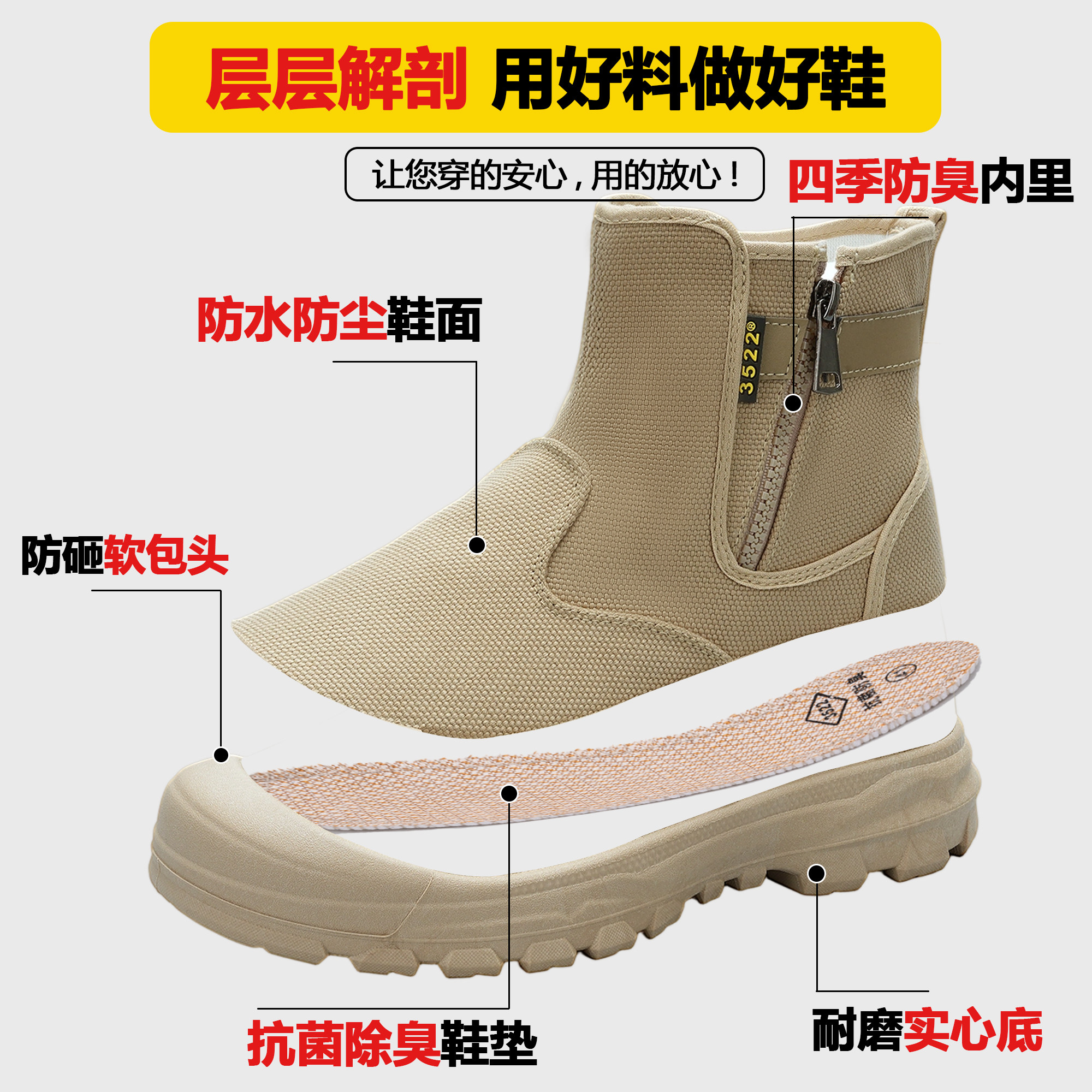 耐磨防滑高帮拉链劳保鞋工地工作正品防水防砸防刺解放鞋军训男鞋