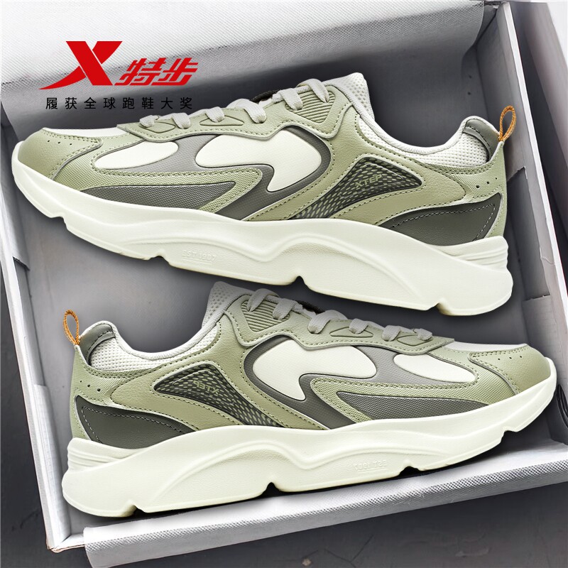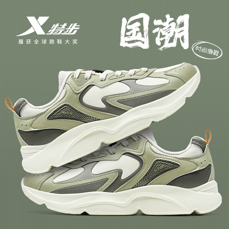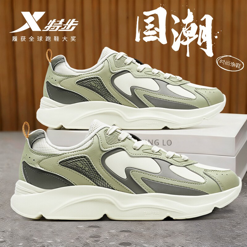 特步男鞋官方旗舰店正品青少年运动鞋厚底增高老爹鞋皮面休闲跑鞋