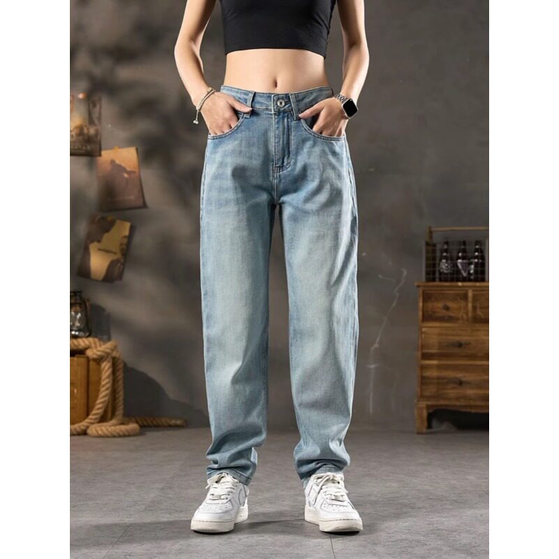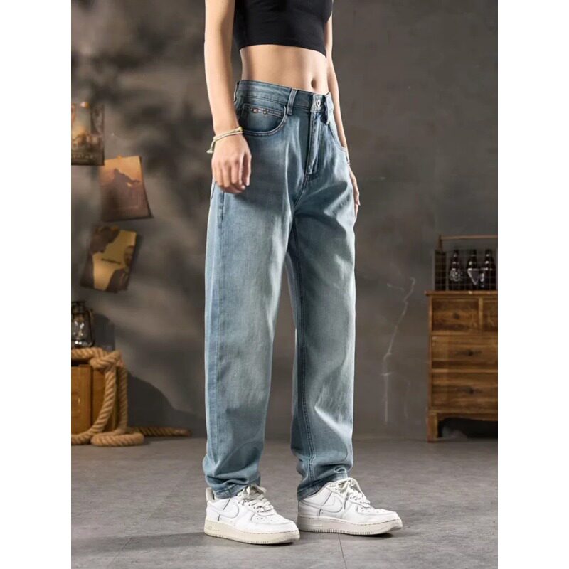 2026春夏新款复古牛仔裤男士水洗浅蓝色裤子宽松微锥直筒长裤男款
