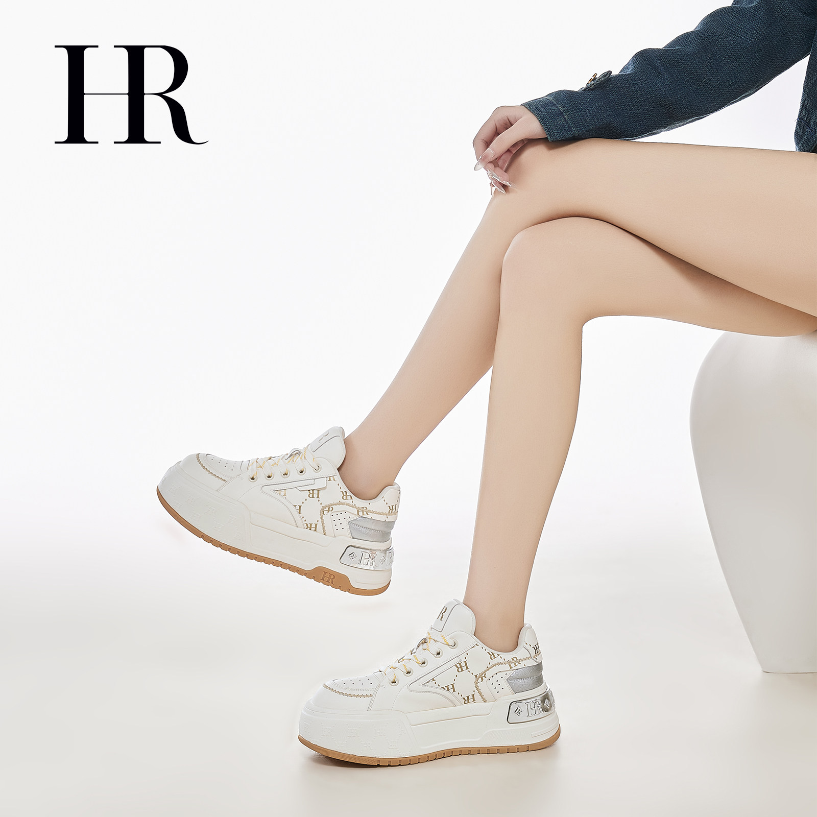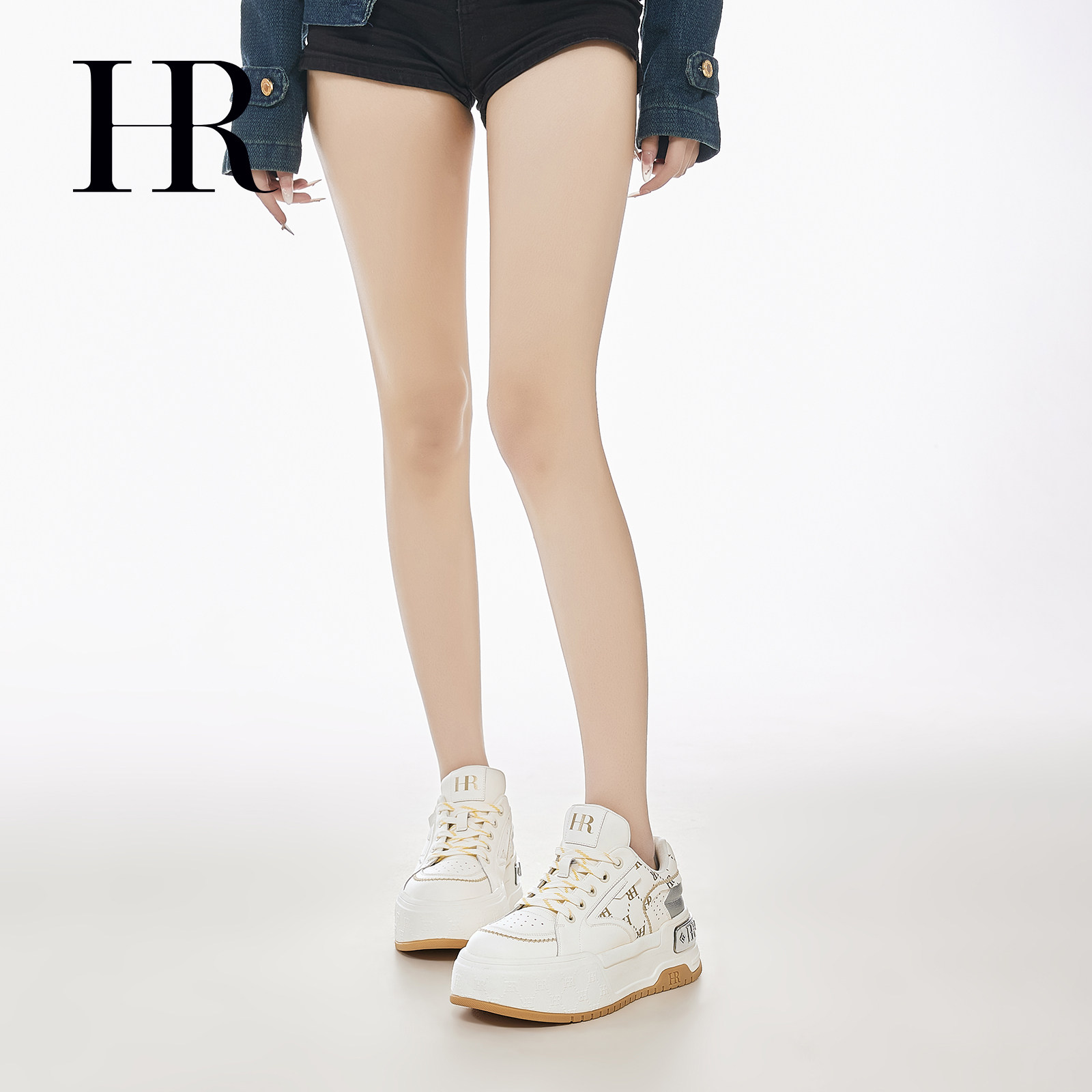 HR赫莲娜休闲板鞋2026春季新款女鞋子厚底金属装饰小众百搭小白鞋
