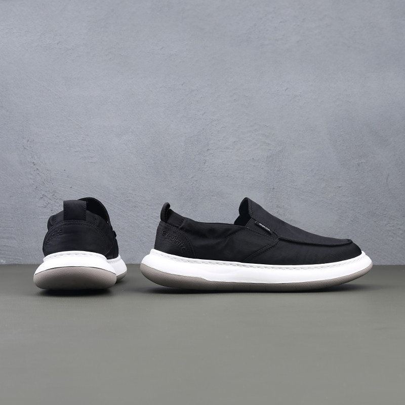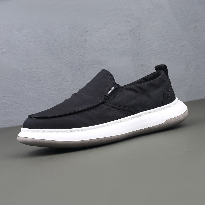男士帆布鞋黑色高端厚底轻便舒适春季薄款透气一脚套软底夏季休闲