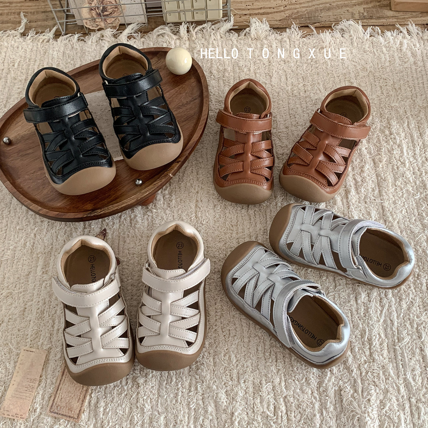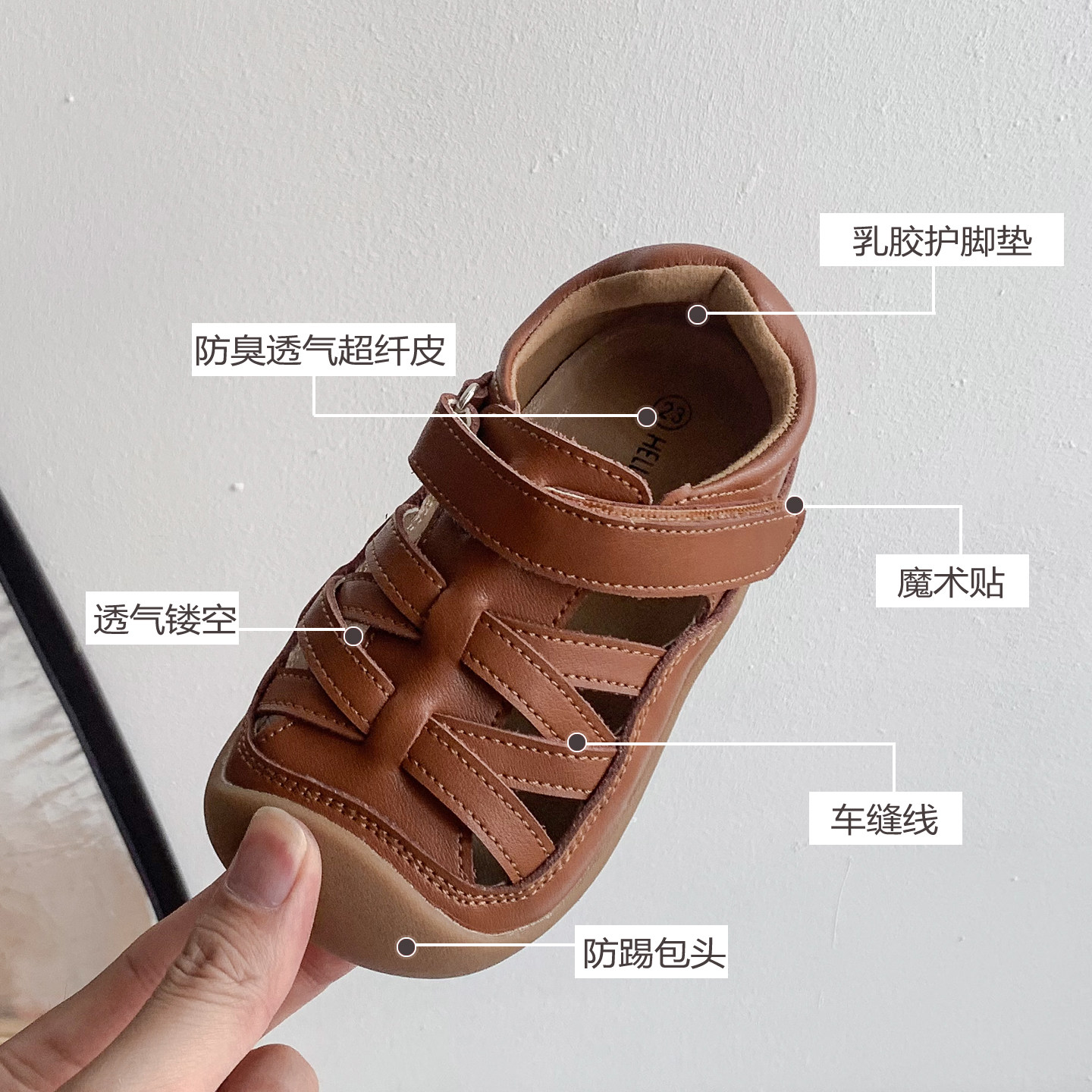 慕葵家宝宝包头凉鞋夏季软底男童镂空真皮单鞋女童幼儿园透气单鞋
