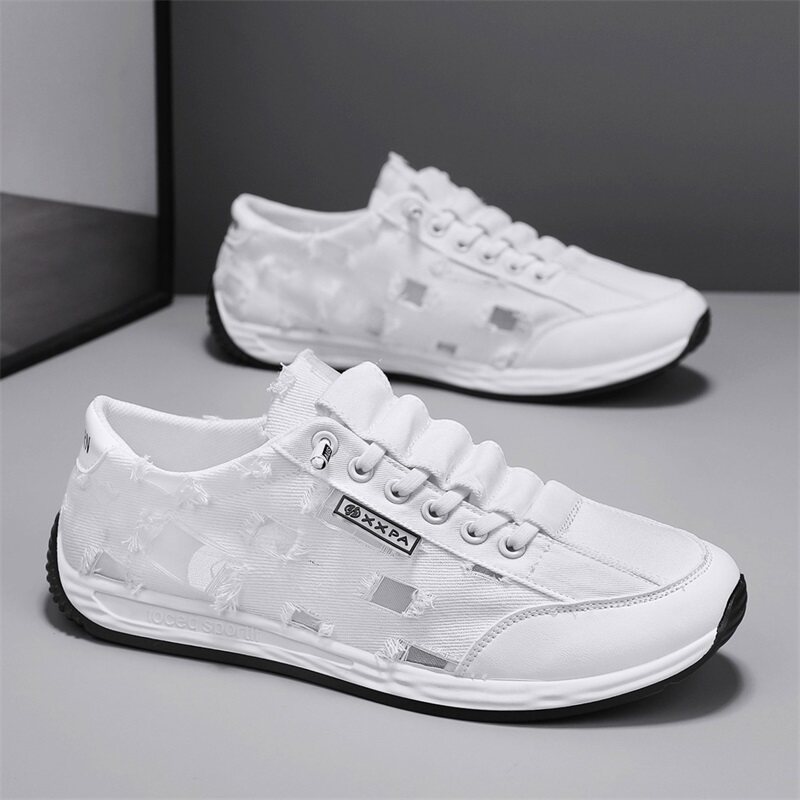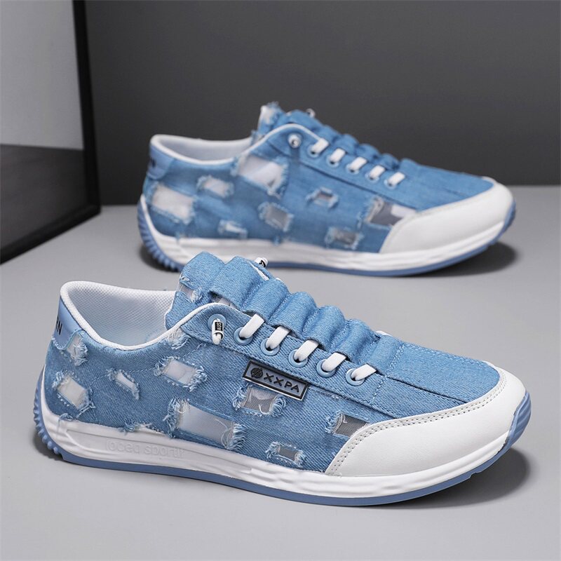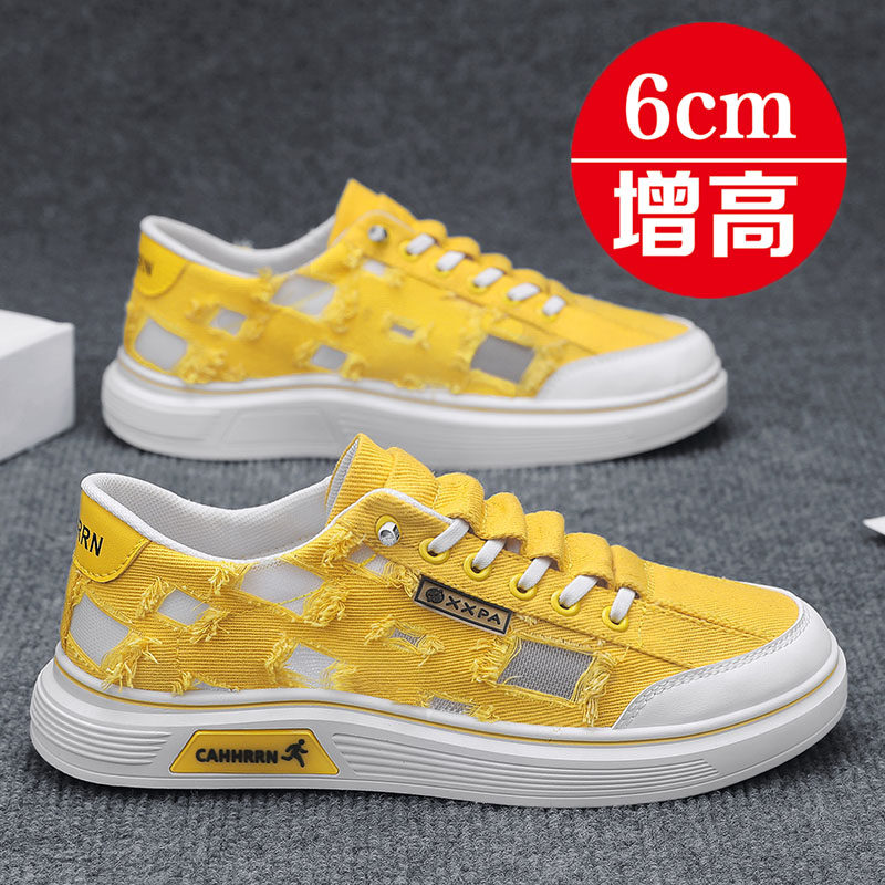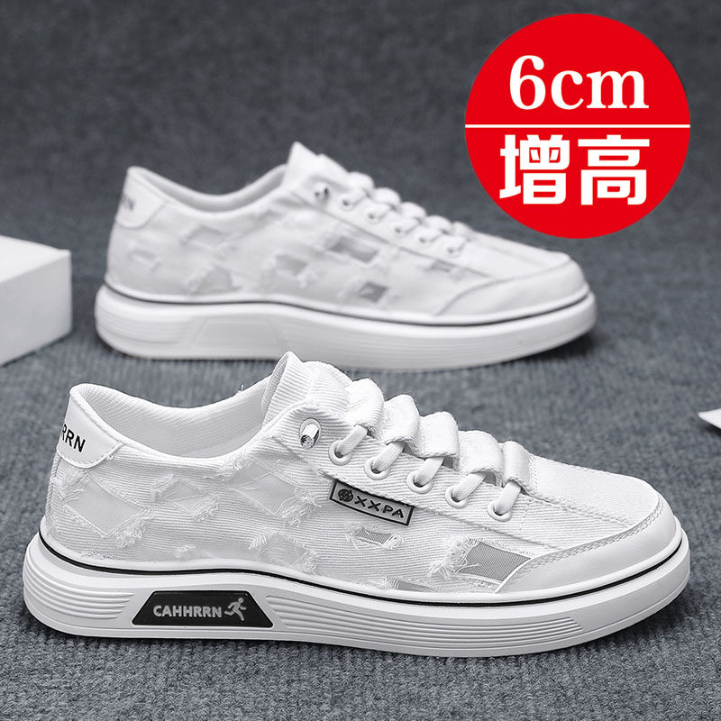 夏季透气男鞋内增高6cm牛仔鞋百搭休闲板鞋一脚蹬防臭破洞帆布鞋