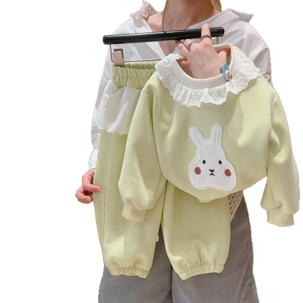 女童卫衣套装2026年新款春秋儿童休闲花边领上衣洋气休闲裤两件套