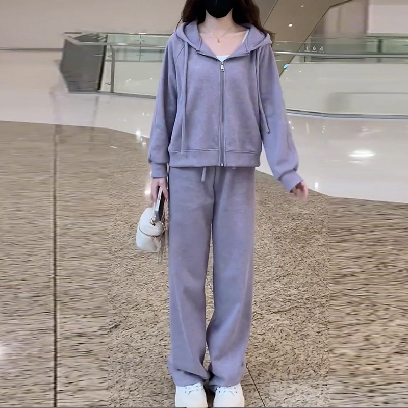 2026新款小个子奶系穿搭一整套女早春季粉色休闲运动卫衣两件套装