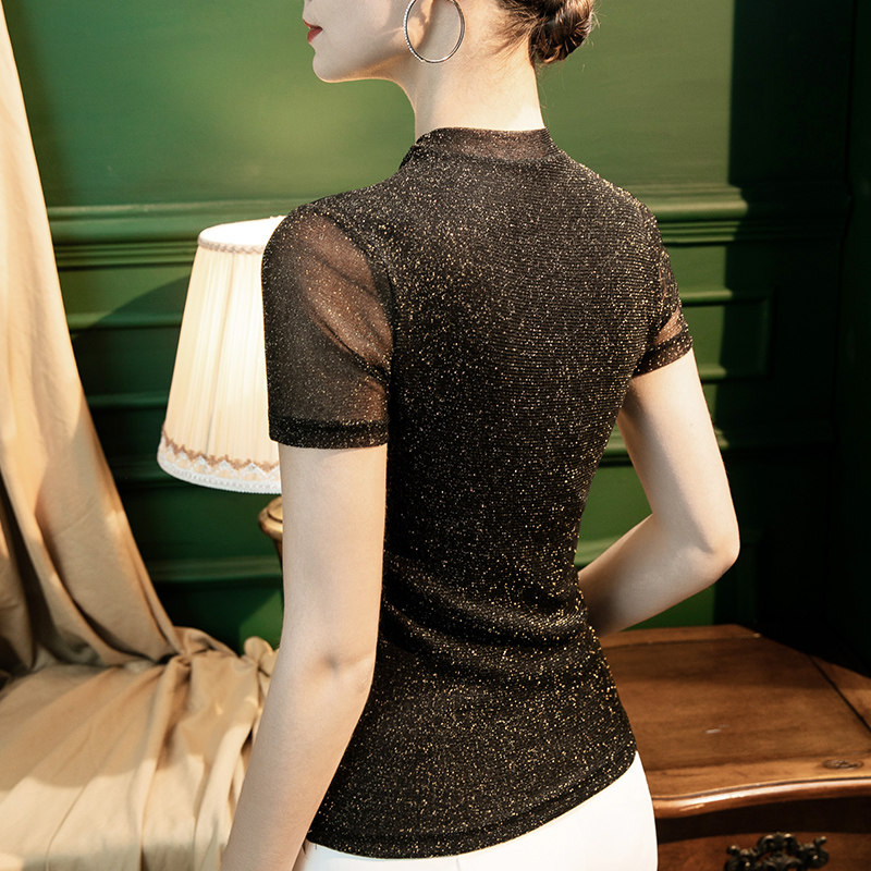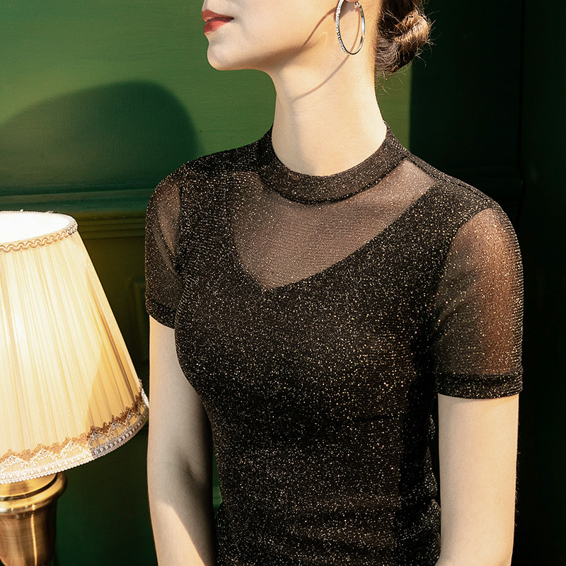 2026春季新款亮丝网纱T恤女修身春款性感洋气镂空女装韩式上衣