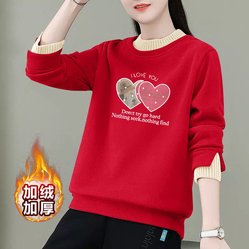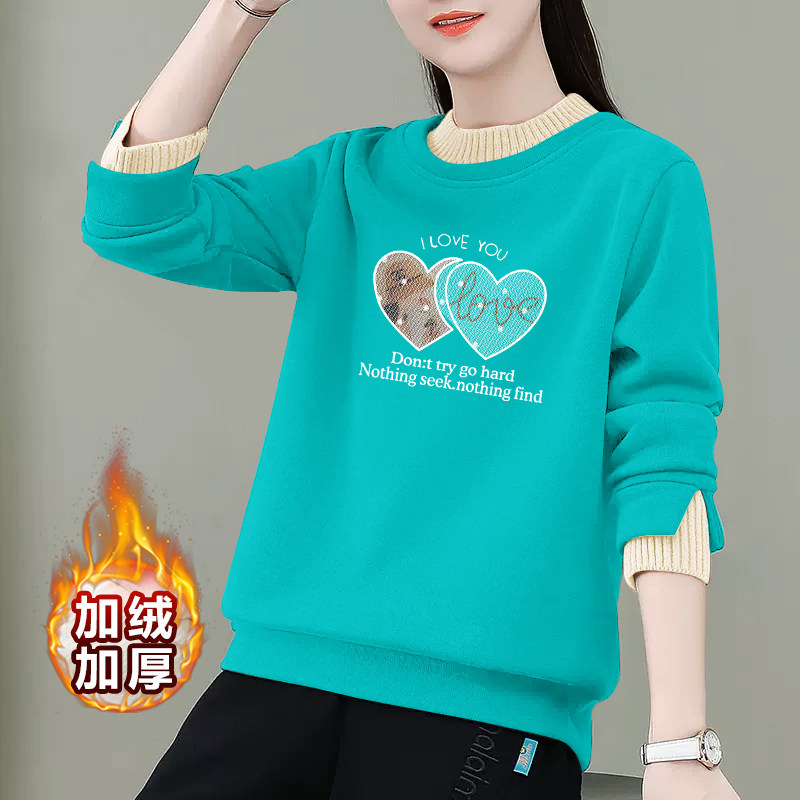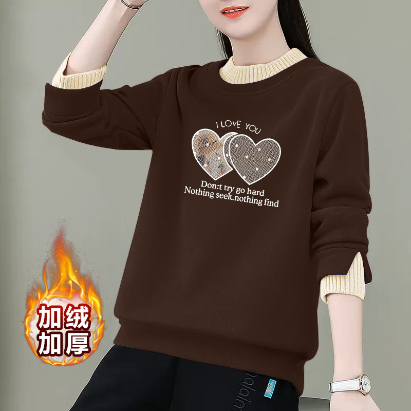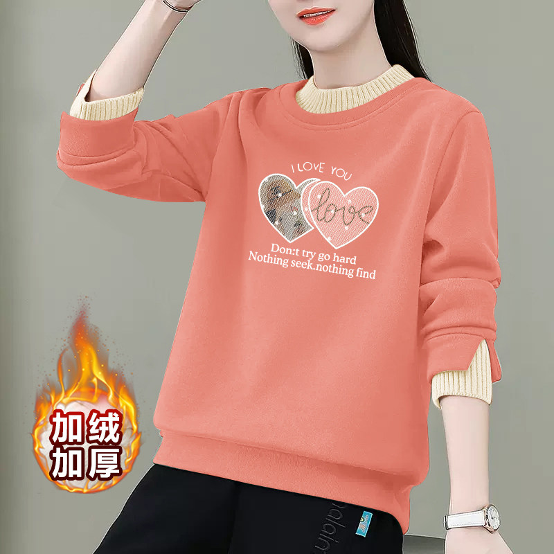 2025年加绒加厚女款上衣宽松假两件宽松显瘦洋气百搭保暖卫衣