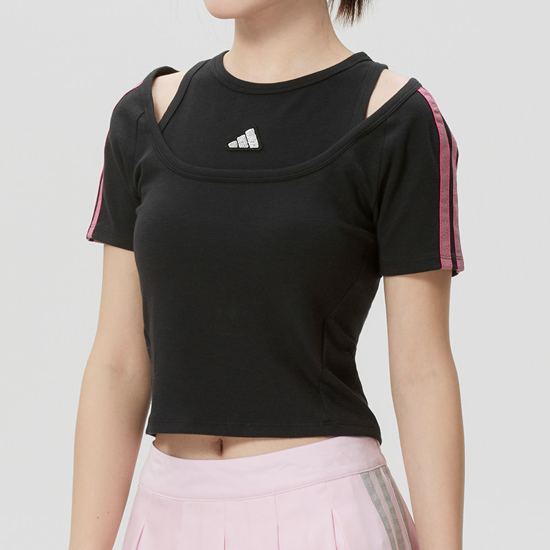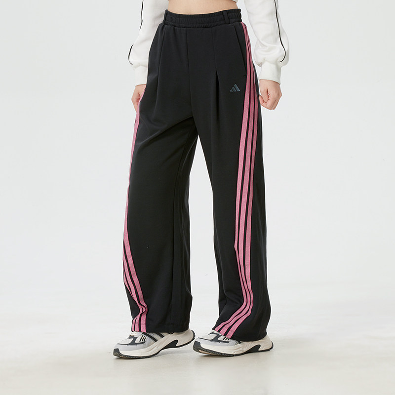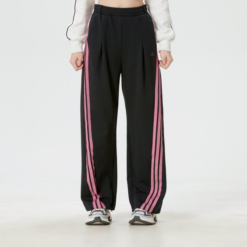 阿迪达斯运动套装女装2026春夏款休闲短袖T恤直筒条纹长裤两件套