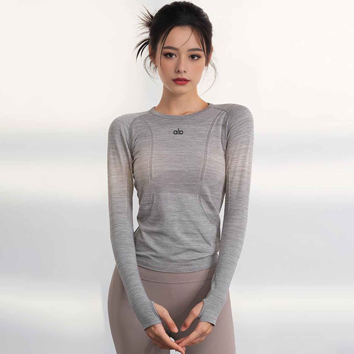 ALOACTIVE运动长袖上衣女透气修身圆领T恤普拉提健身速干瑜伽服