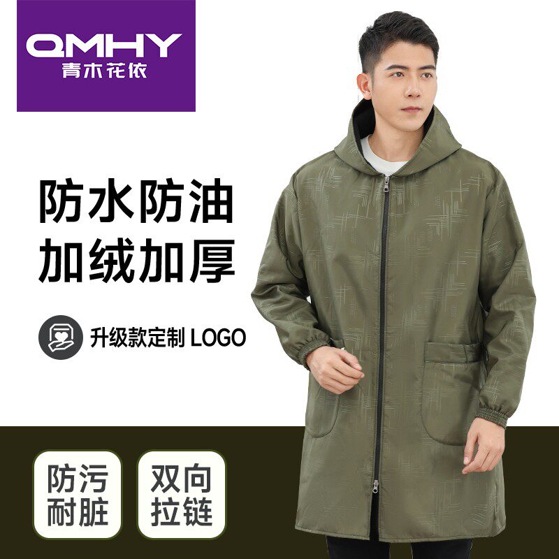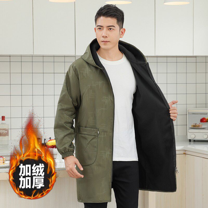 罩衣男款新款加绒工作服男装大褂防尘秋冬加厚防水防油污外套围裙