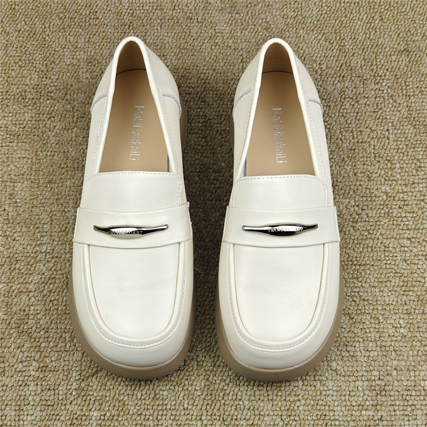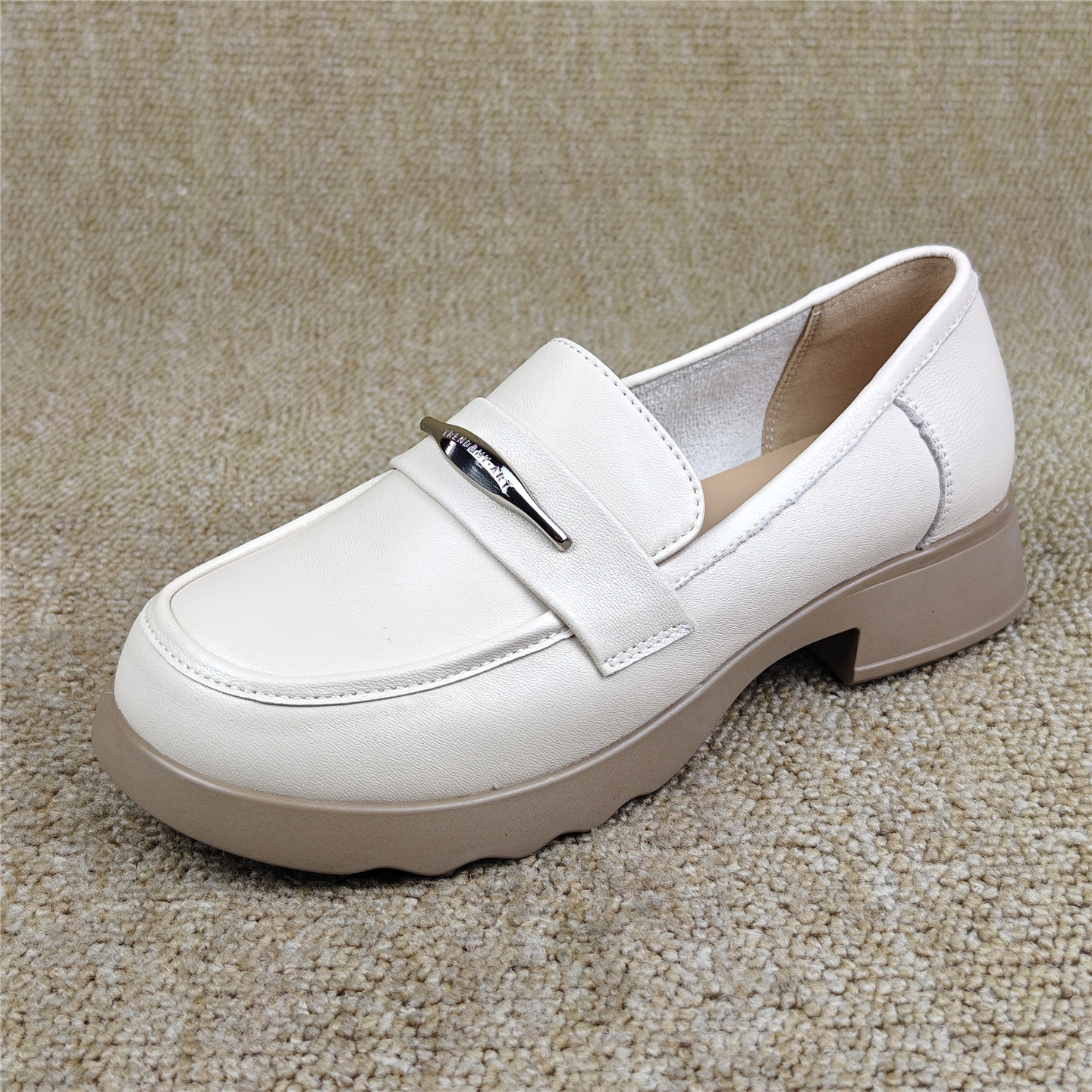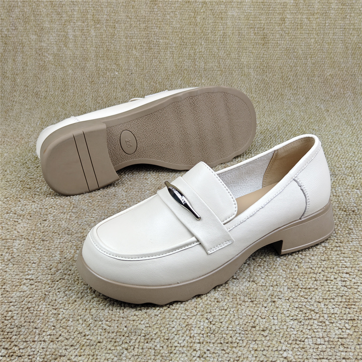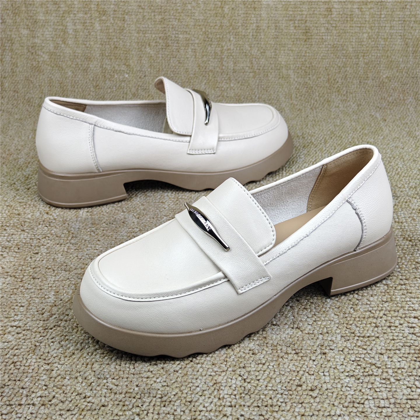 头层羊皮女鞋商场断码英伦风真皮厚底乐福鞋女一脚蹬休闲百搭单鞋