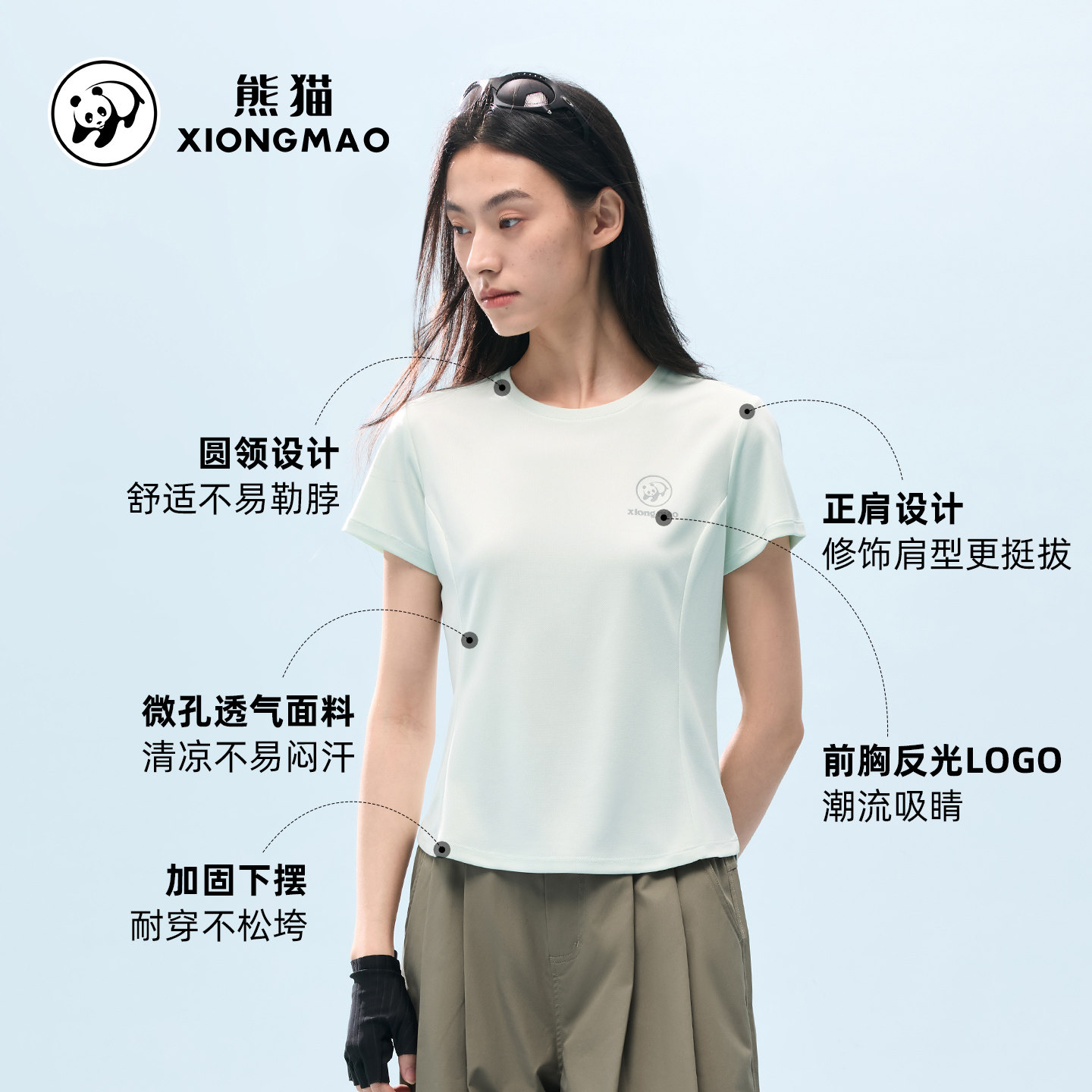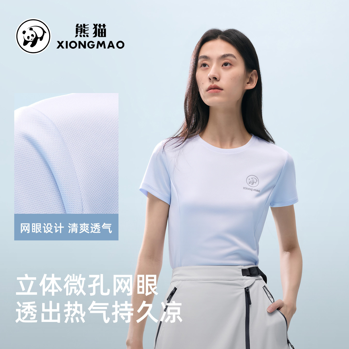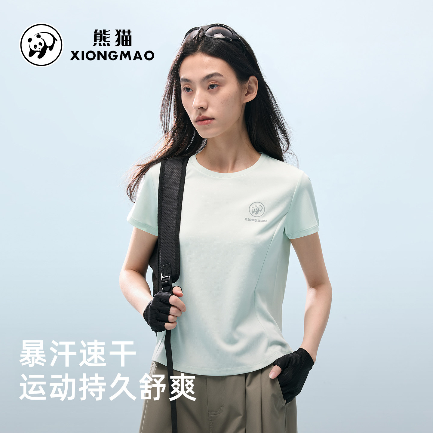 熊猫t恤短袖女款2026新款百搭宽松休闲徒步运动正肩圆领上衣