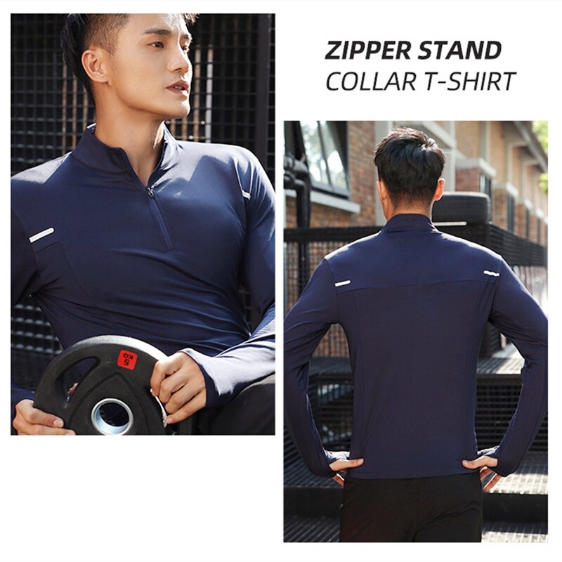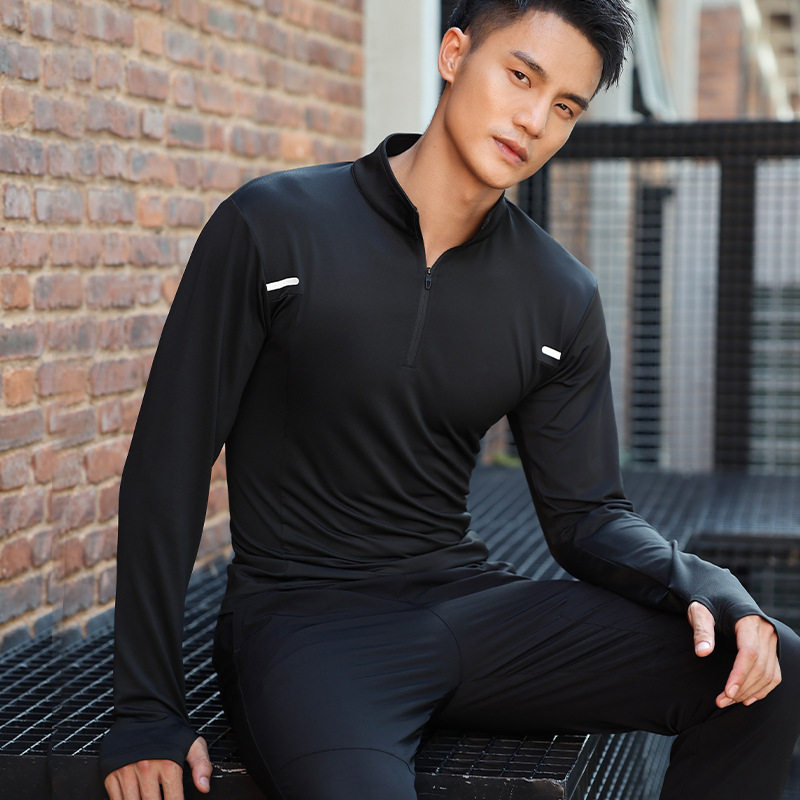 秋冬长袖运动上衣t恤体育生训练服男田径跑步速干衣立领健身衣服