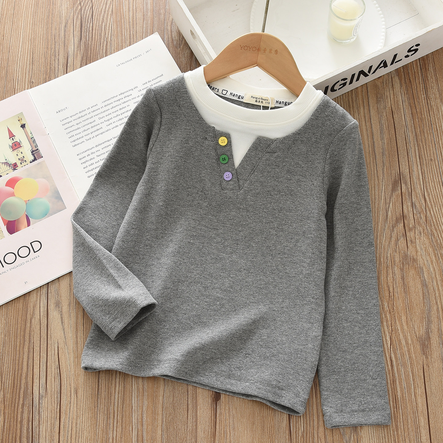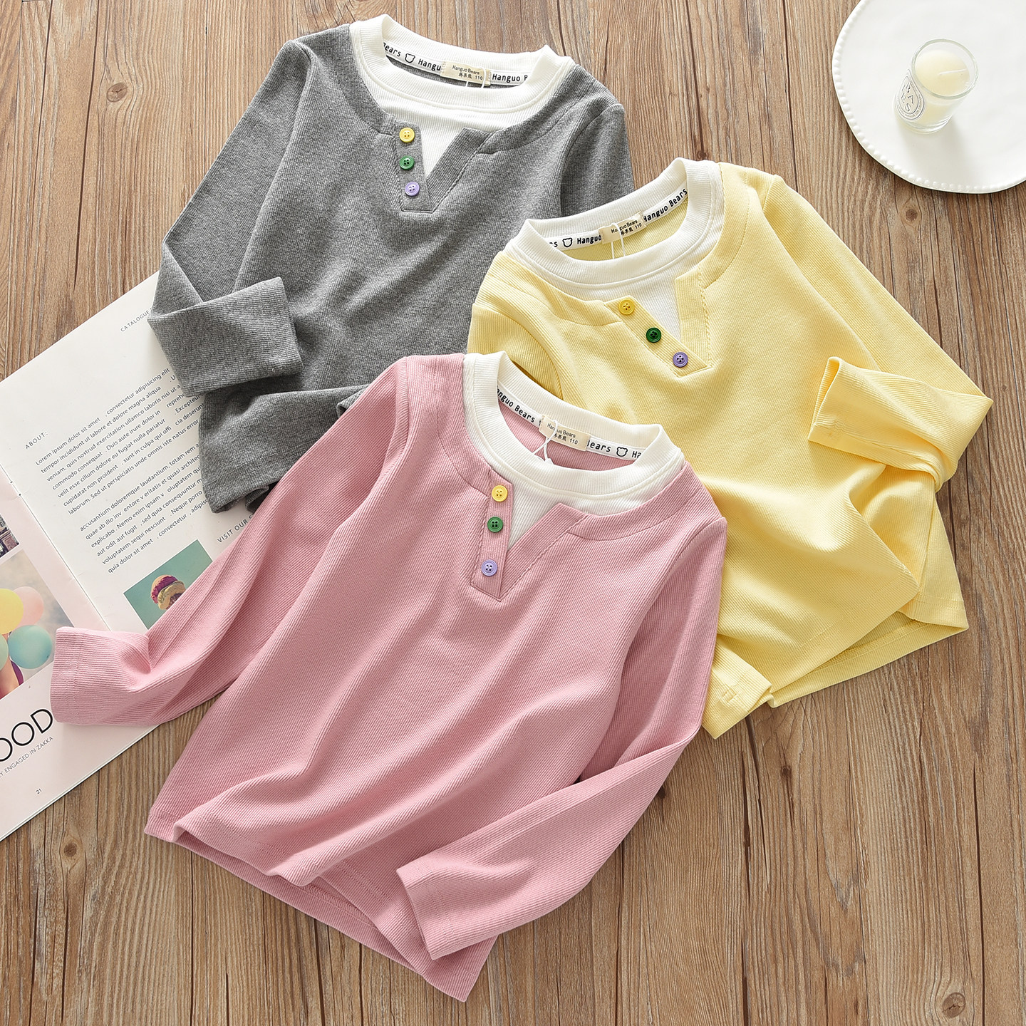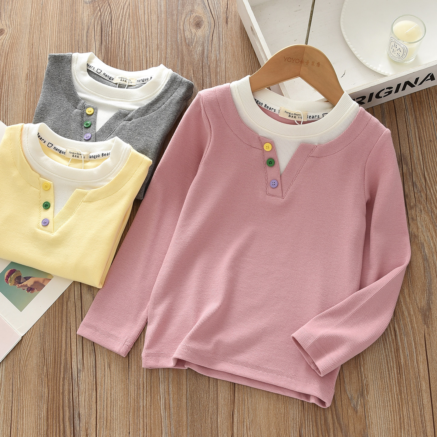 洋气童装2026春季薄款女童打底衫T恤衫宝宝中大童假两件长袖上衣