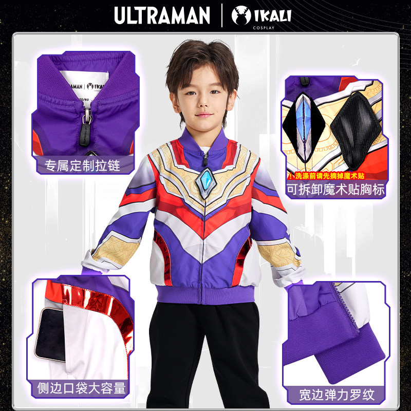 正版奥特曼衣服男童外套春装26新款帅气男孩夹克运动棒球服带面具