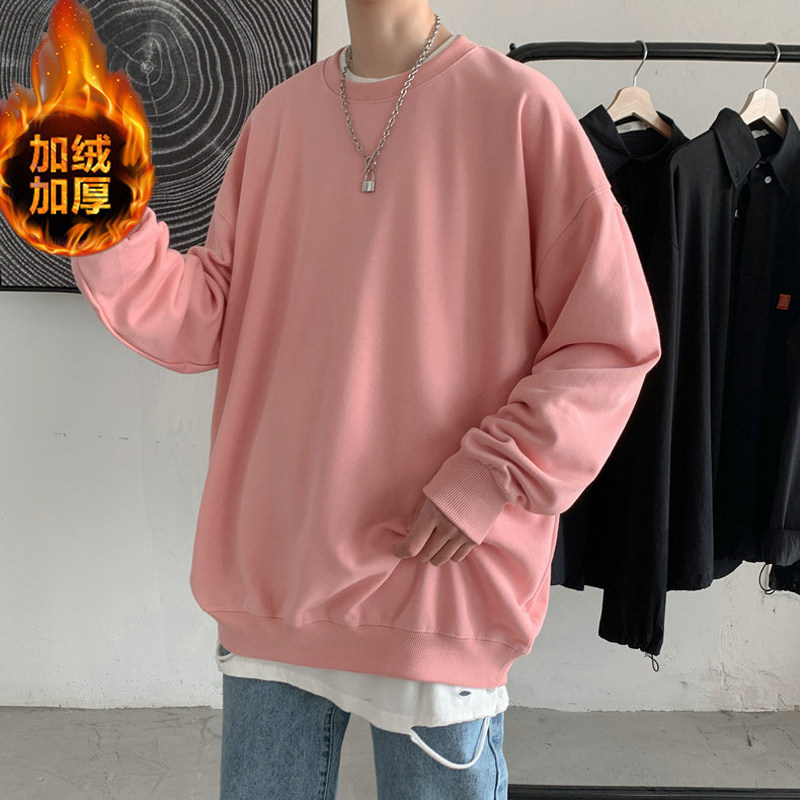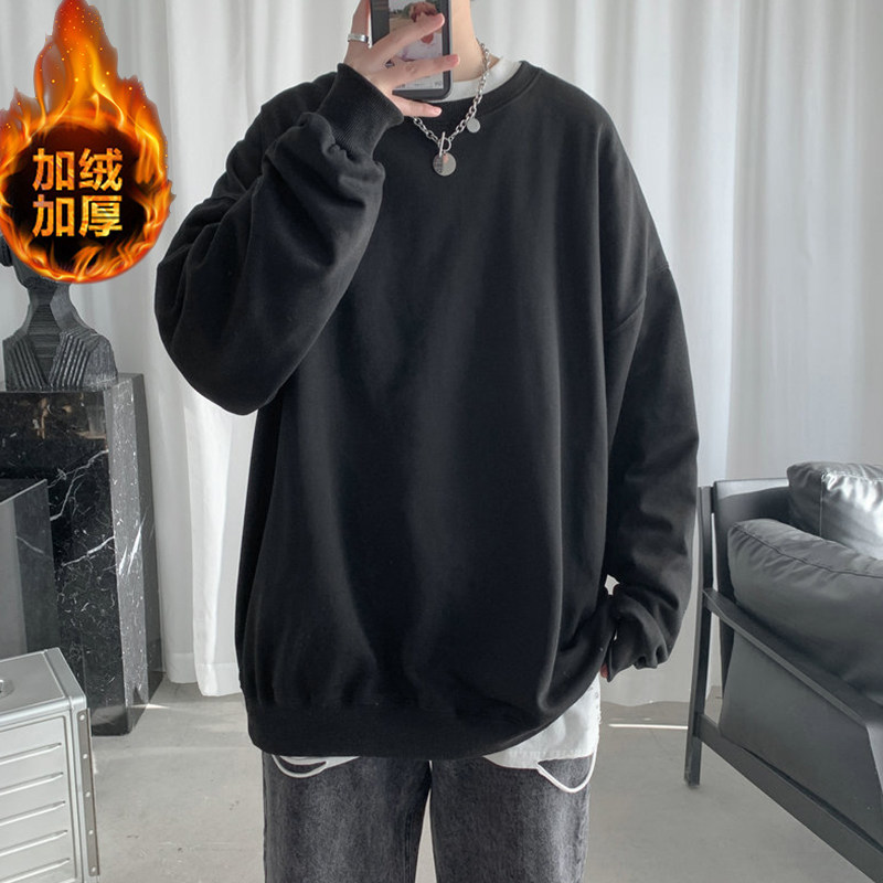 冬季青少年男生加绒无帽卫衣男高中初中学生不带帽保暖加厚秋冬款