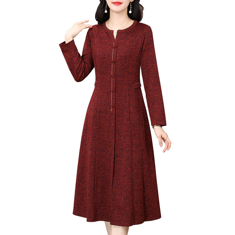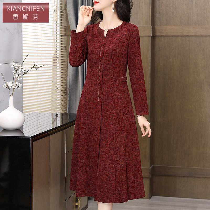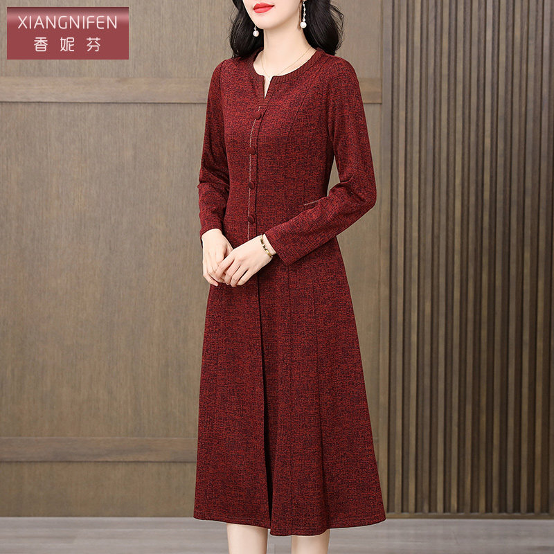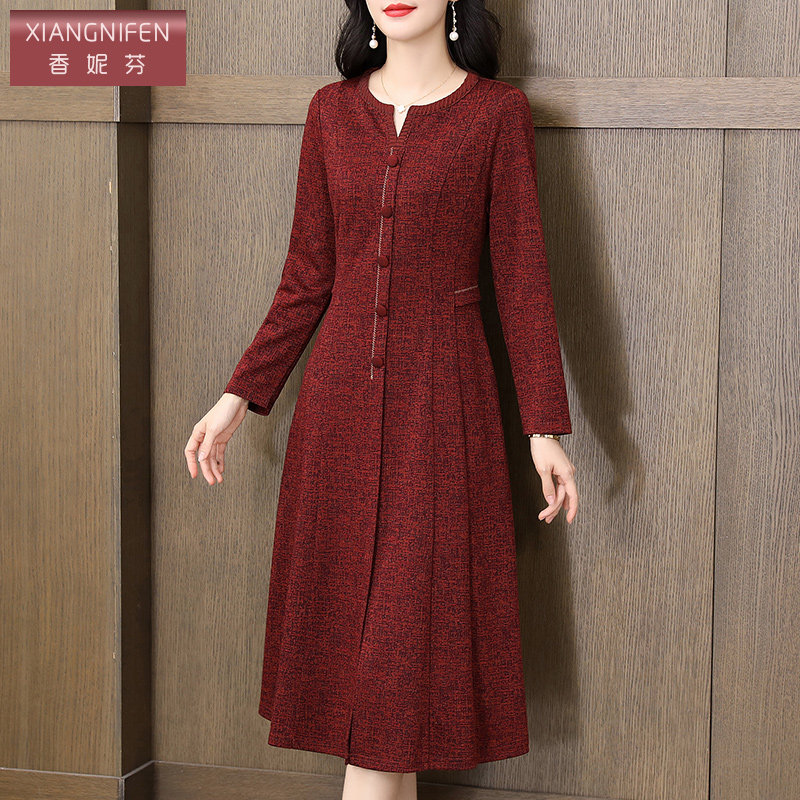 香妮芬2026春季新款连衣裙女长袖高档气质妈妈修身显瘦大气上档次