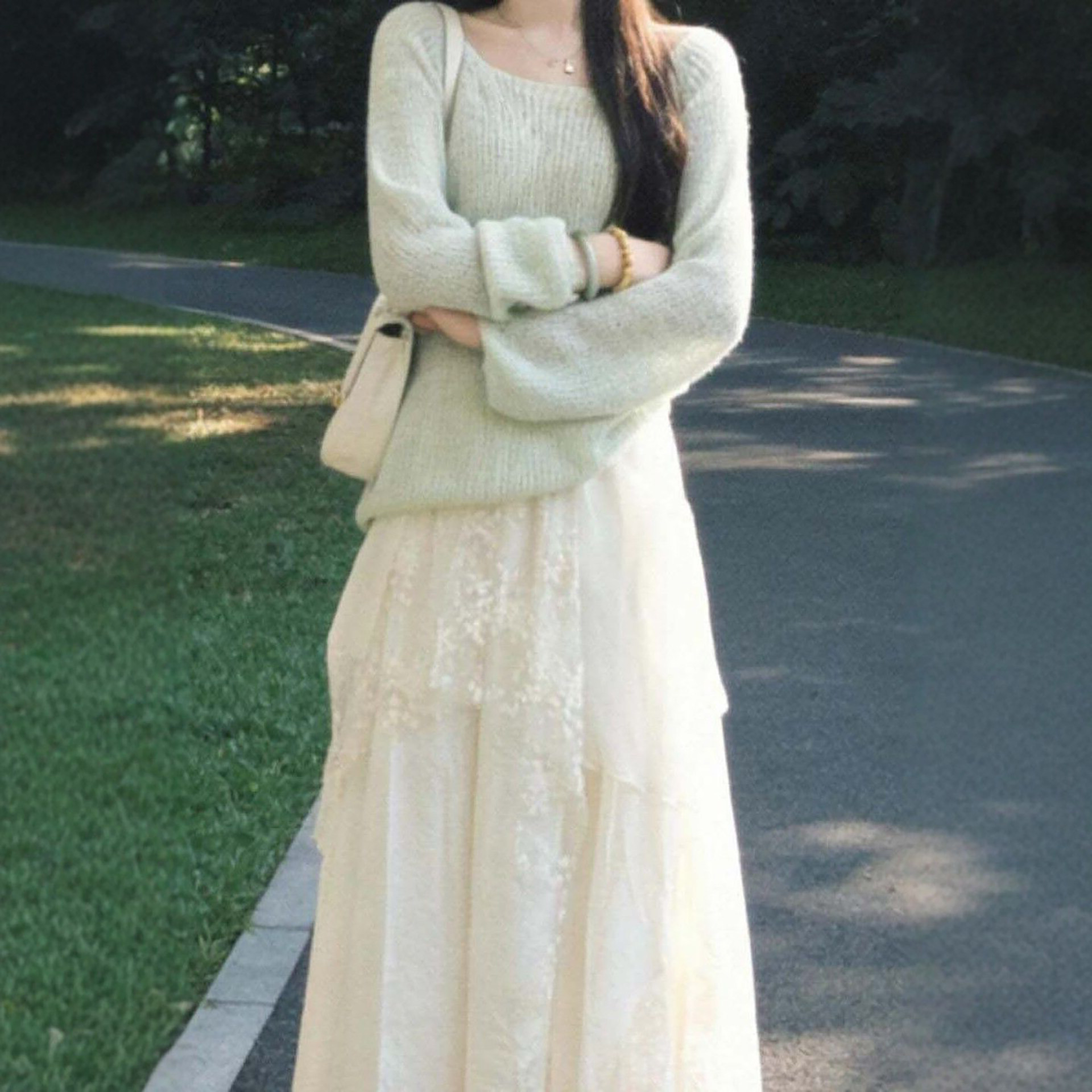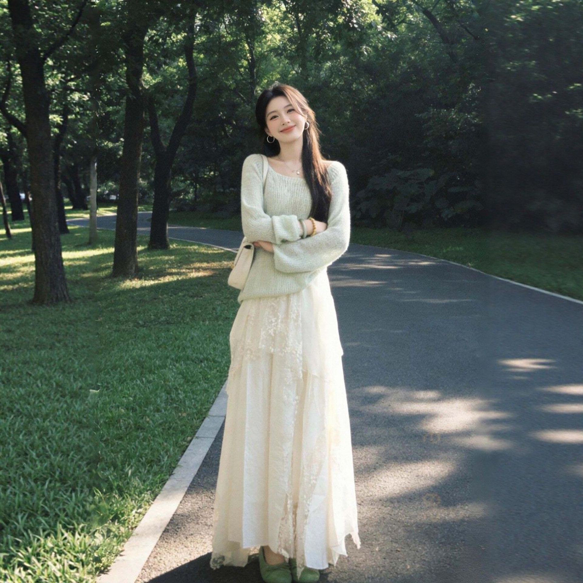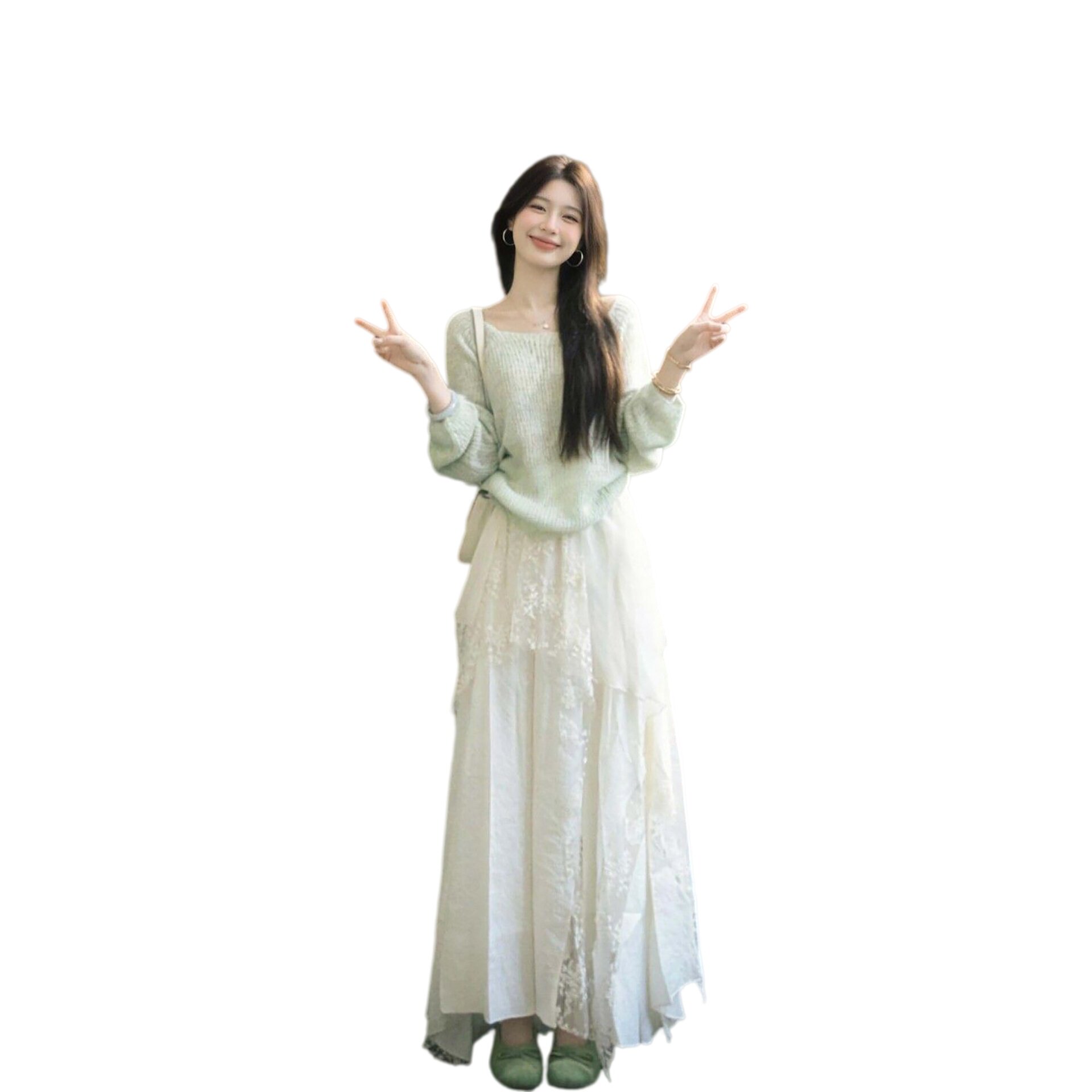 2026早春新款巨好看的套装薄荷绿针织衫搭配不规则半身裙两件套女