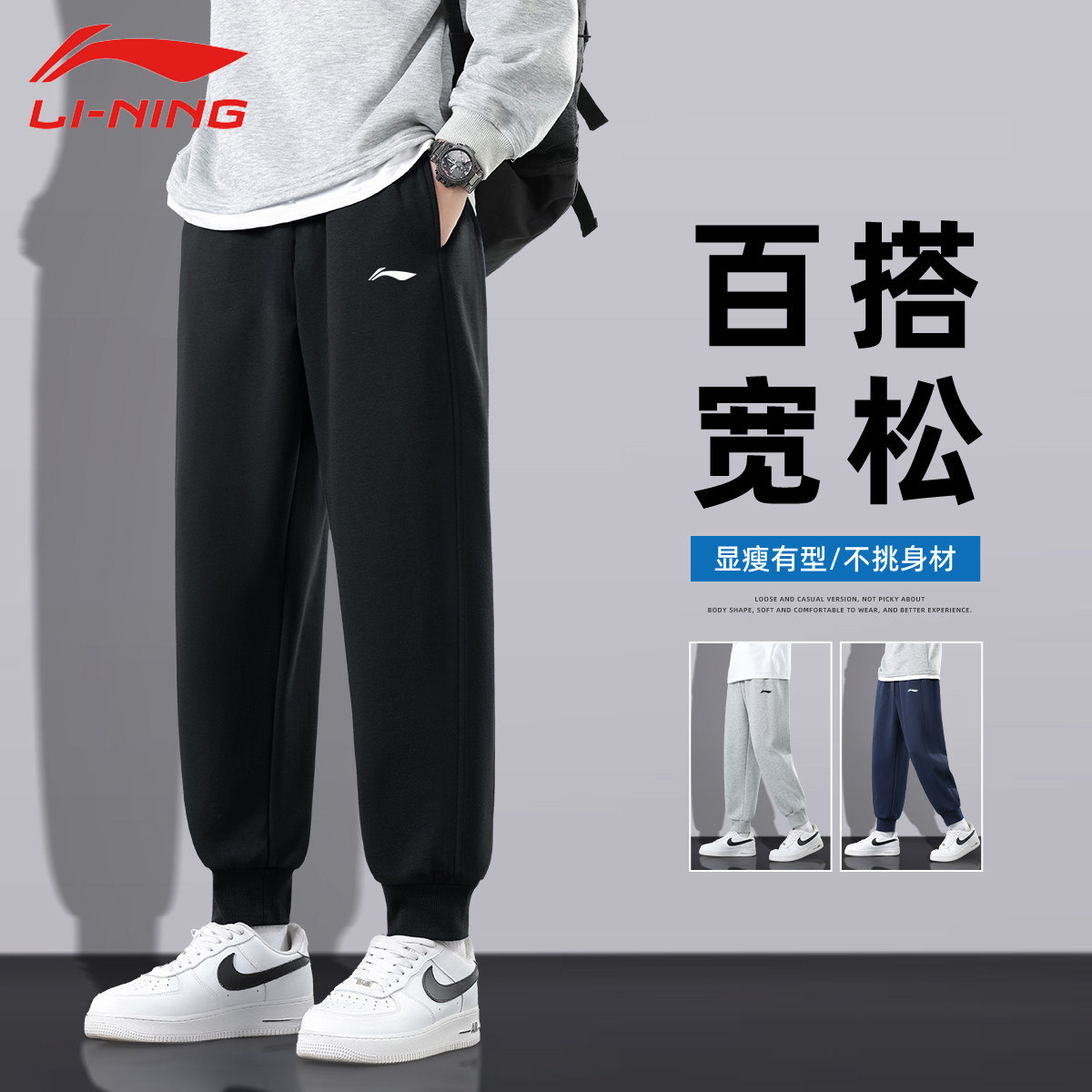 李宁运动裤男秋冬新款卫裤青少年收口裤加绒加厚长裤保暖大码裤子