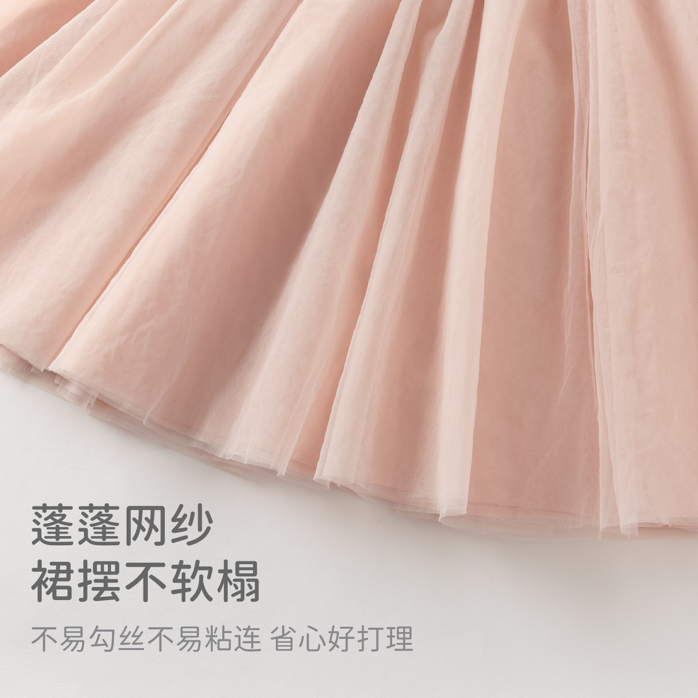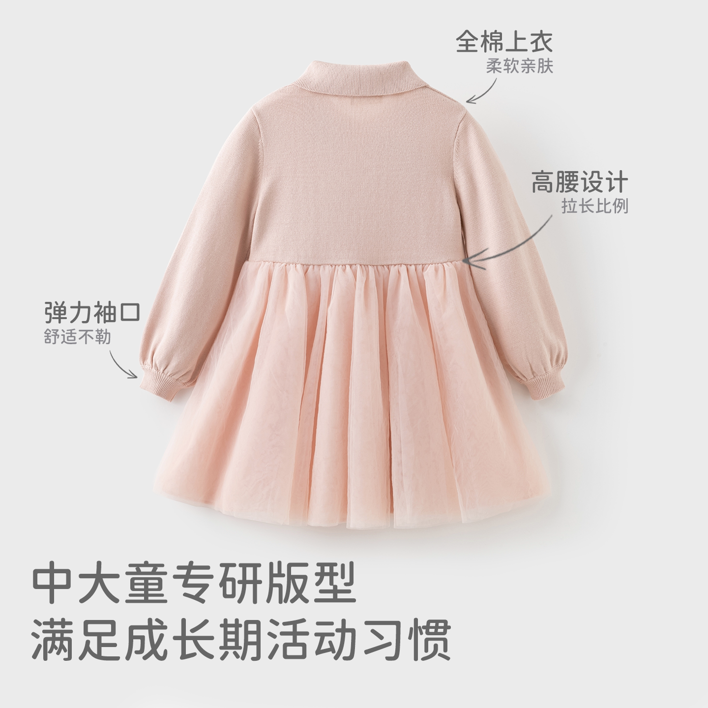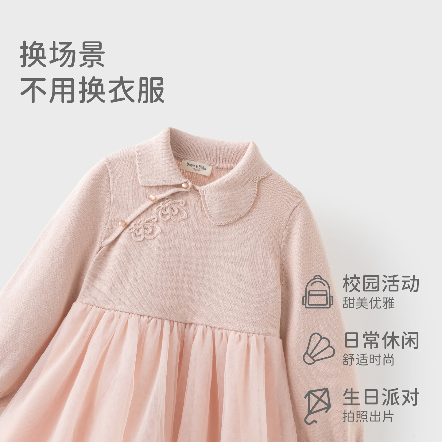 戴维贝拉中大童毛衣连衣裙2026春装新款女童粉色中国风网纱裙子