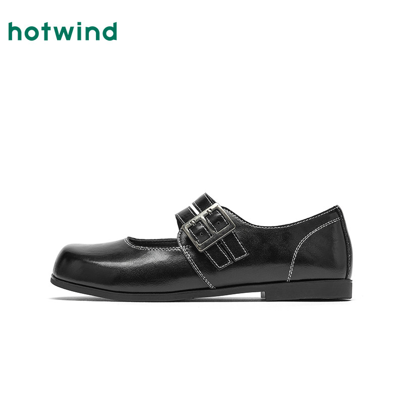 热风黑色小皮鞋女款2026年春季新款法式薄底玛丽珍单鞋百搭女鞋子