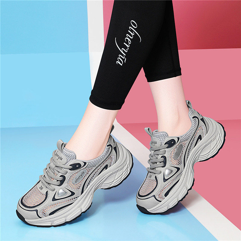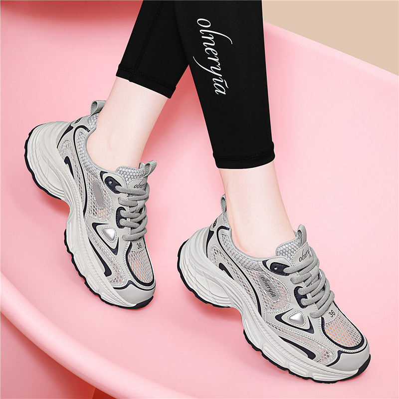 真皮凉鞋女款2025新款夏季外穿薄款老爹鞋厚底网面透气休闲运动鞋