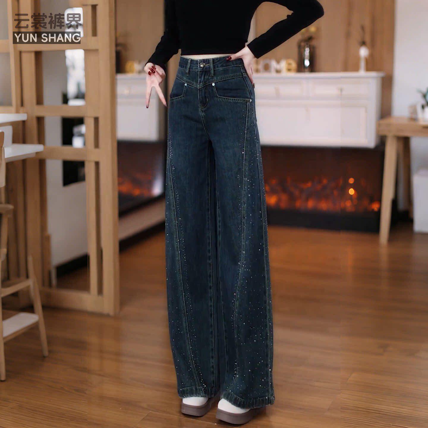 满天星带钻牛仔裤女2026新款春秋季小个子裤子女款阔腿裤女直筒裤