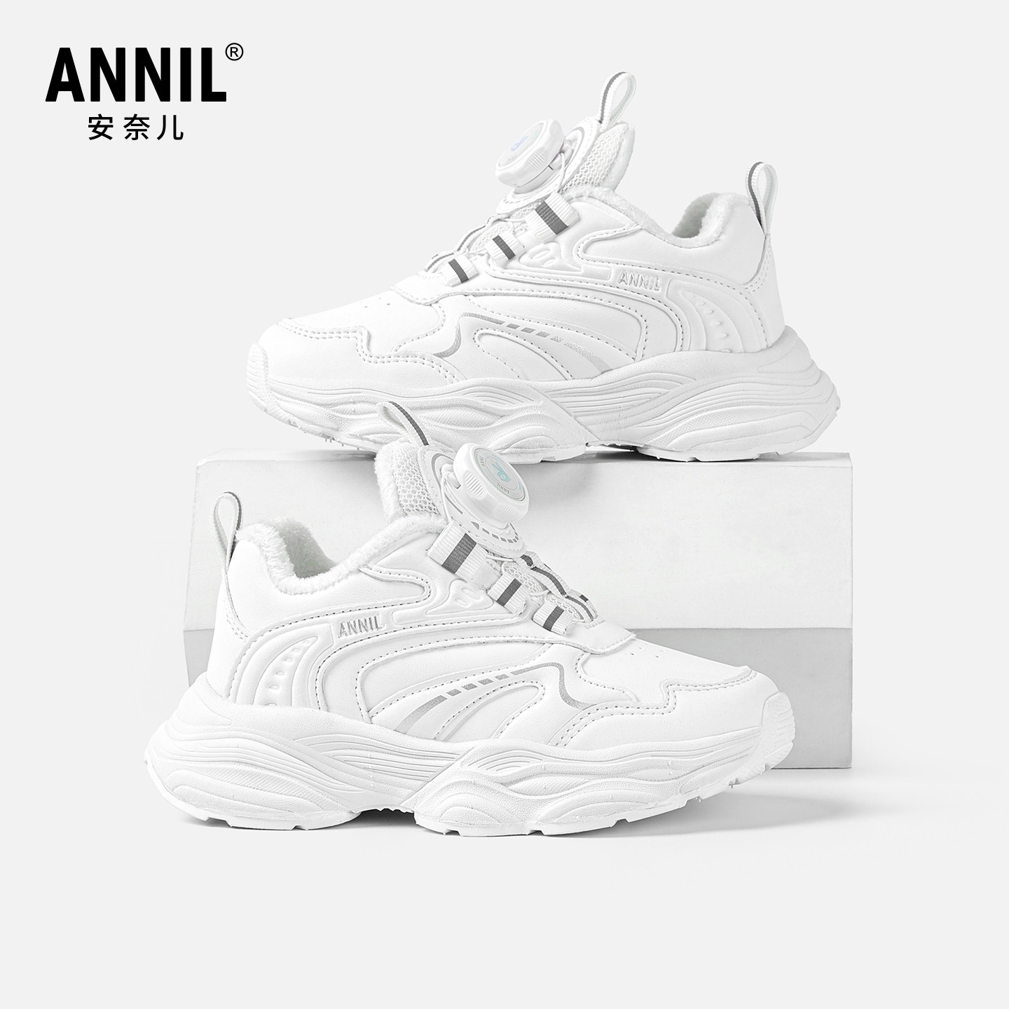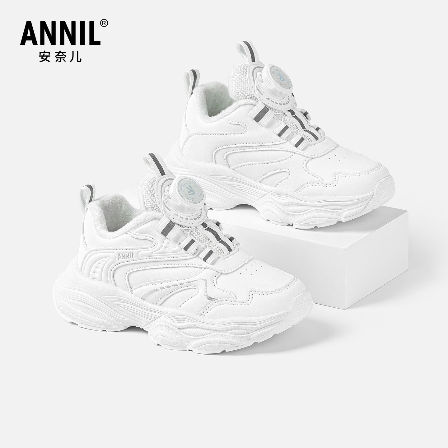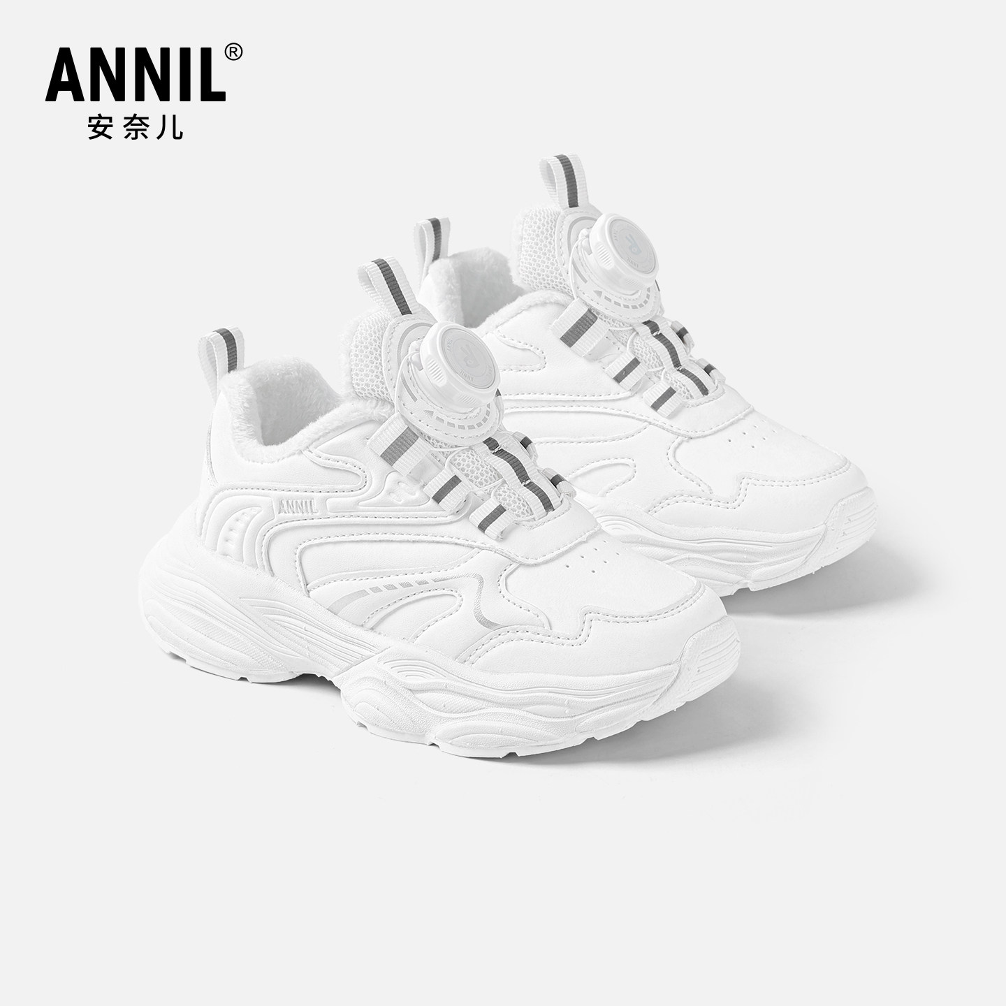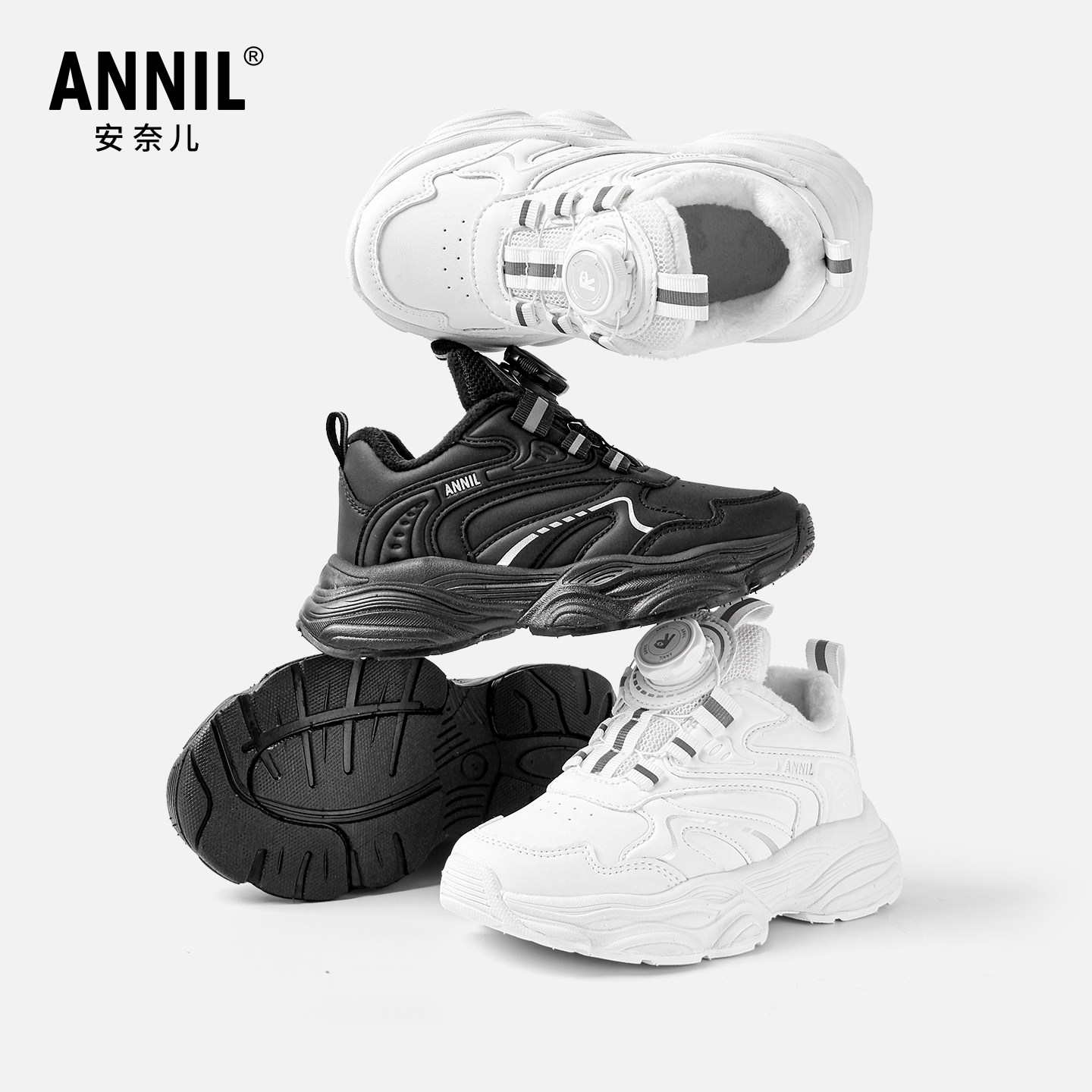 annil安奈儿童鞋2026冬季新款男童女童加绒老爹鞋休闲儿童运动鞋