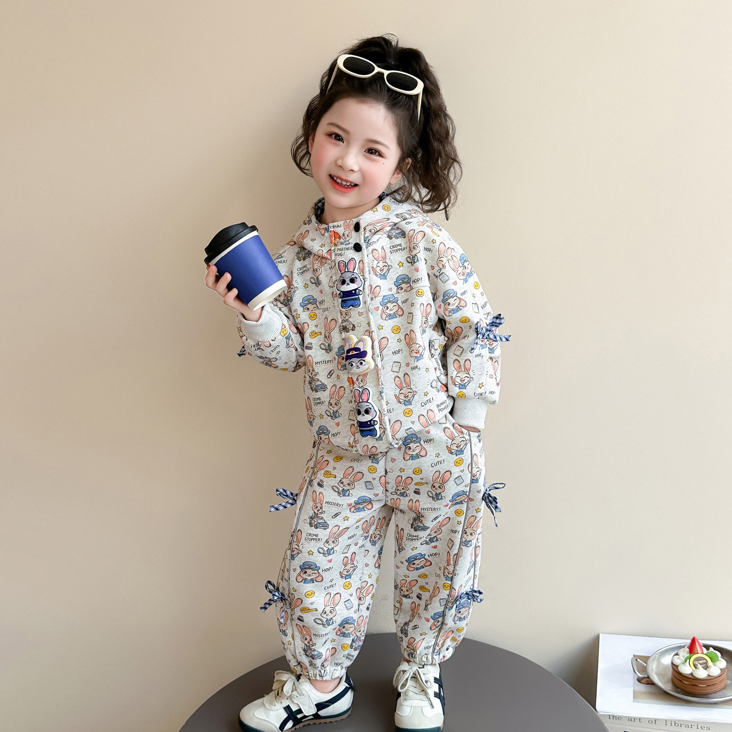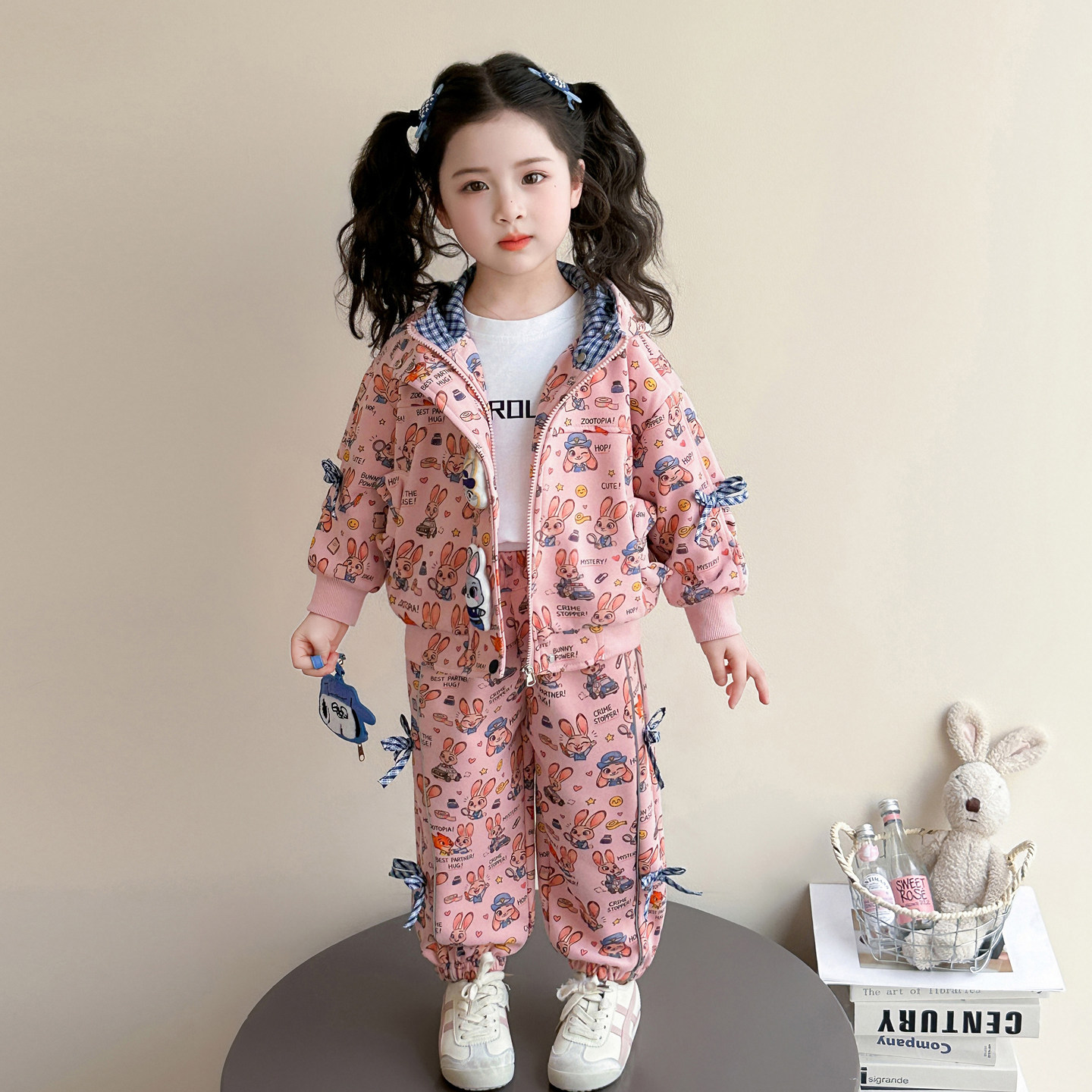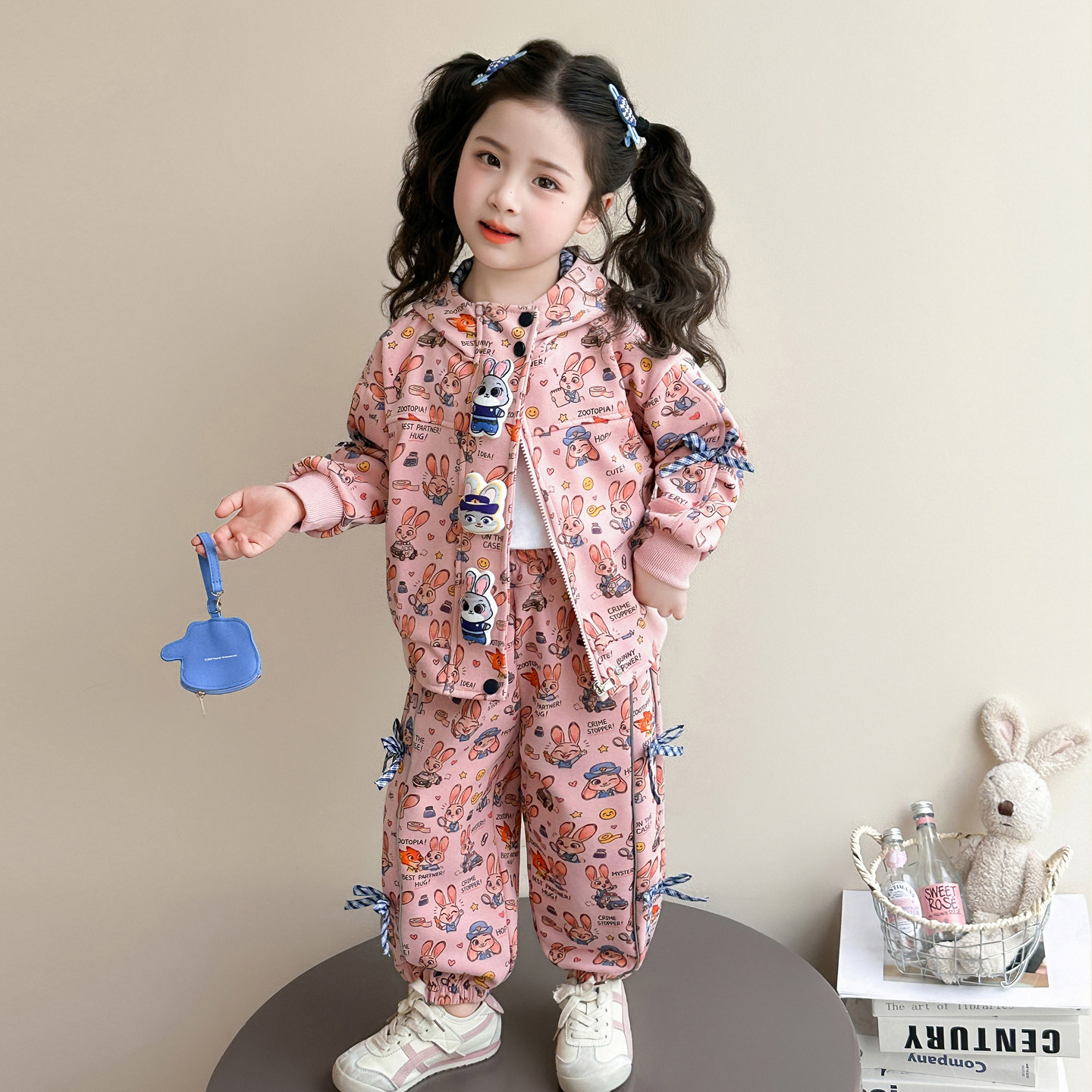 女童春秋款蓝兔套装2026新款洋气时髦儿童女宝宝春季春装早春卫衣