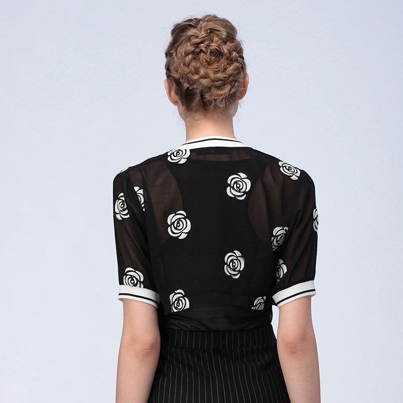 2024夏季绣花雪纺时尚棒球小外套百搭短款披肩坎肩女连衣裙外搭女
