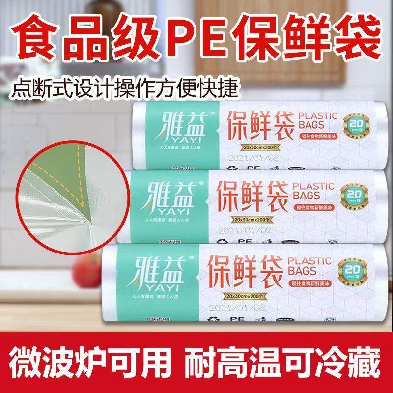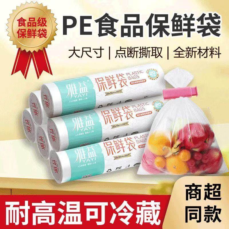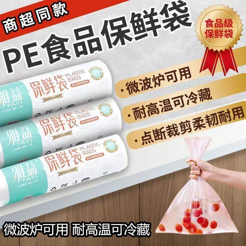 保鲜袋家用食品级冰箱手撕PE塑料袋大号小号一次性加厚保鲜袋经济