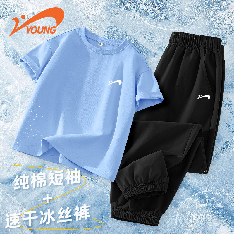 贵人鸟童装男童夏季套装儿童2026新款纯棉短t袖中大童速干两件套