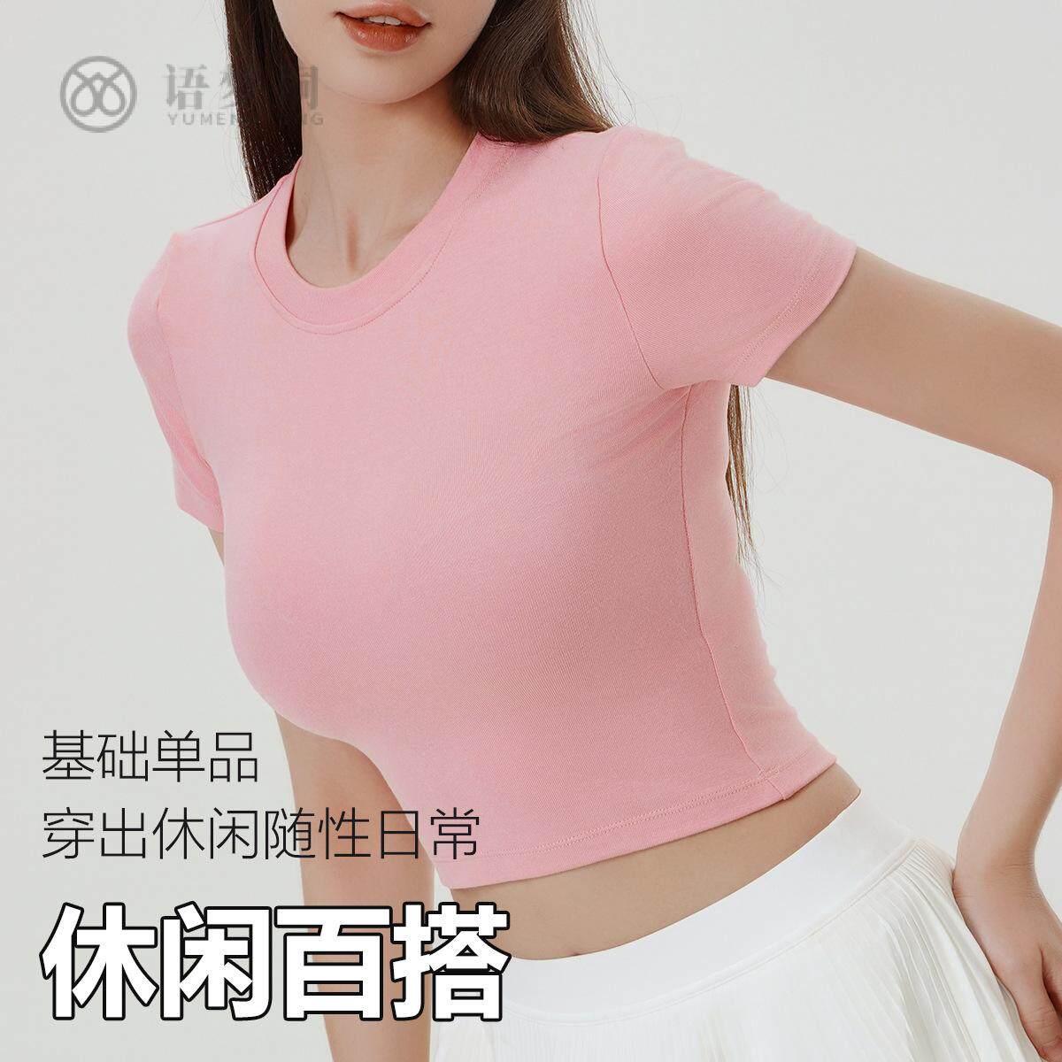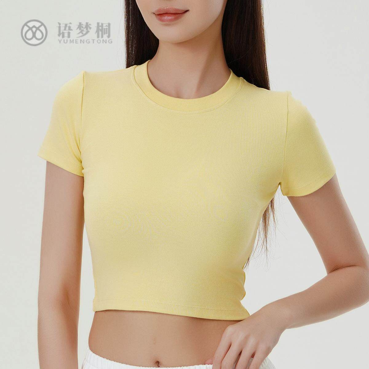 2025圆领短袖露脐超短运动潮搭辣妹跳舞健身瑜伽上衣女