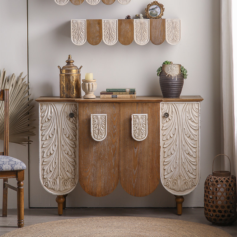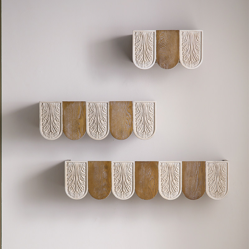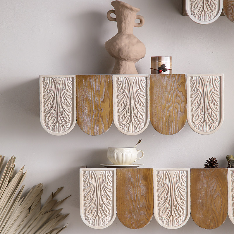 法式复古装饰墙面实木置物架家具背景托架创意雕花沙发背景墙层架