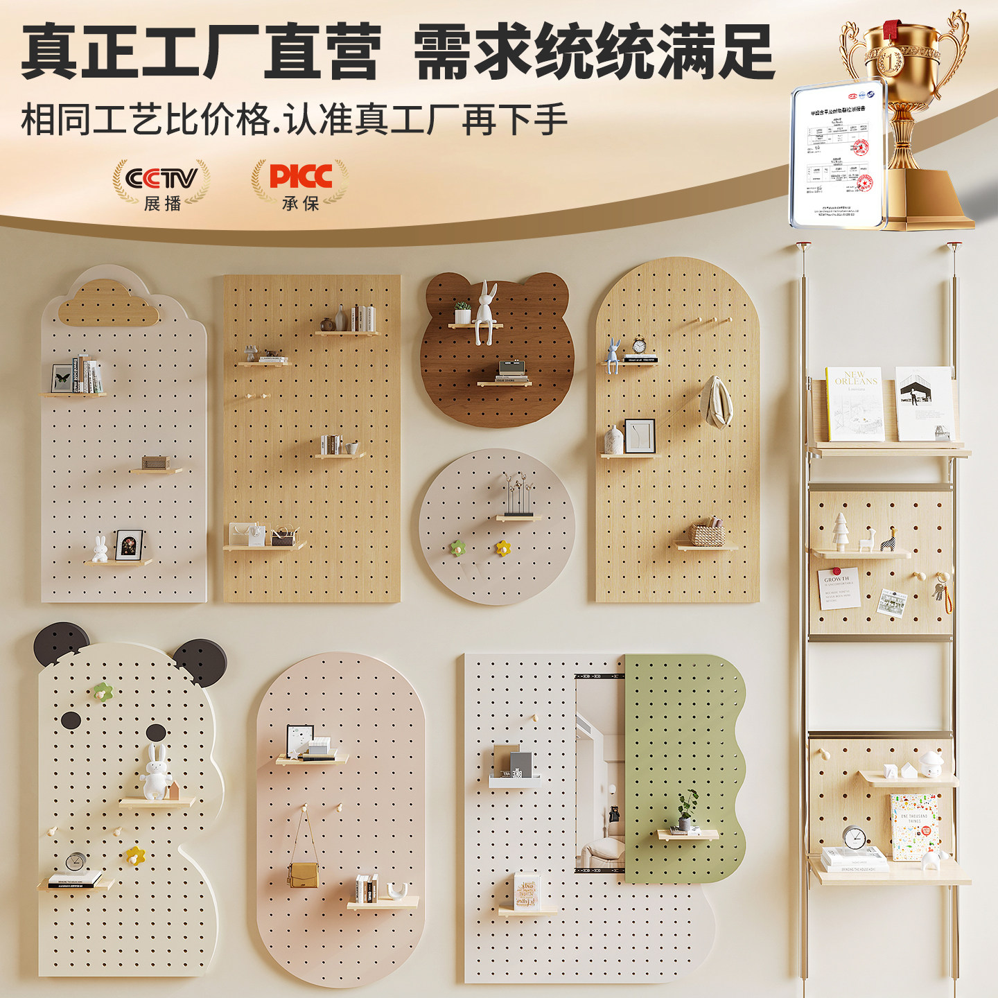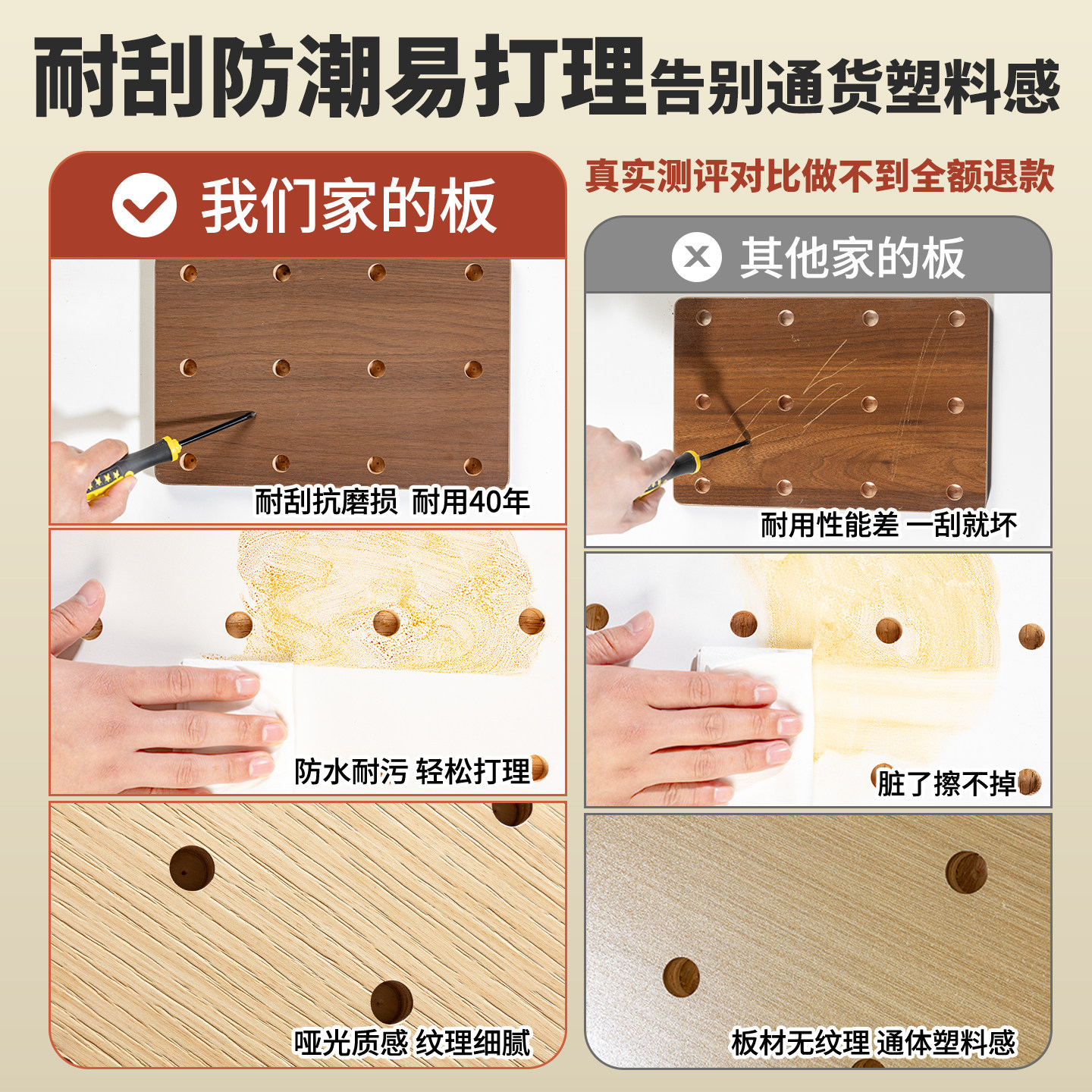311线报网描述:实木洞洞板定制玄关墙上置物架墙面展示收纳