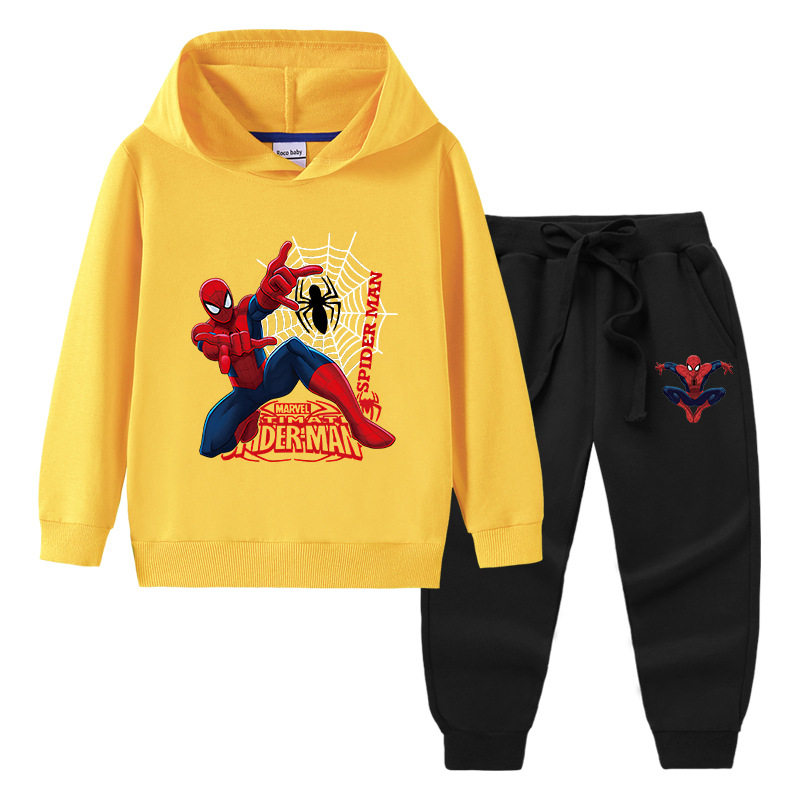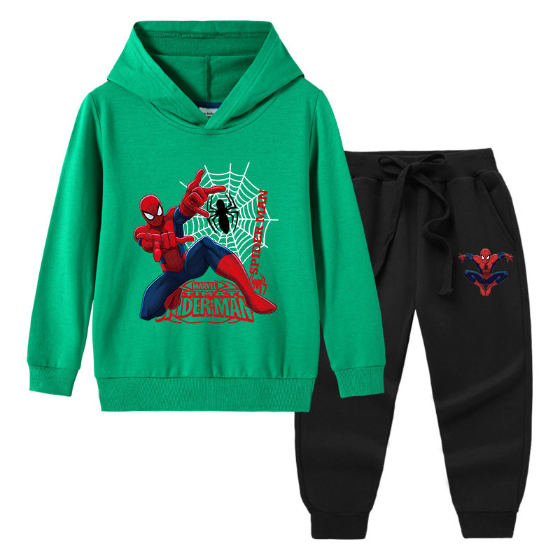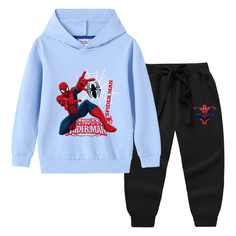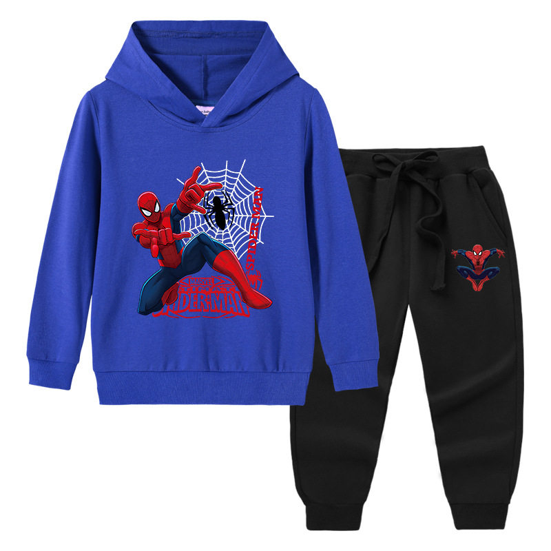 蜘蛛侠衣服儿童长袖卫衣男童运动套装春装卡通春秋薄款两件套连帽