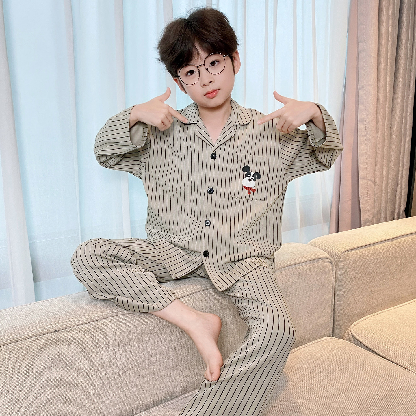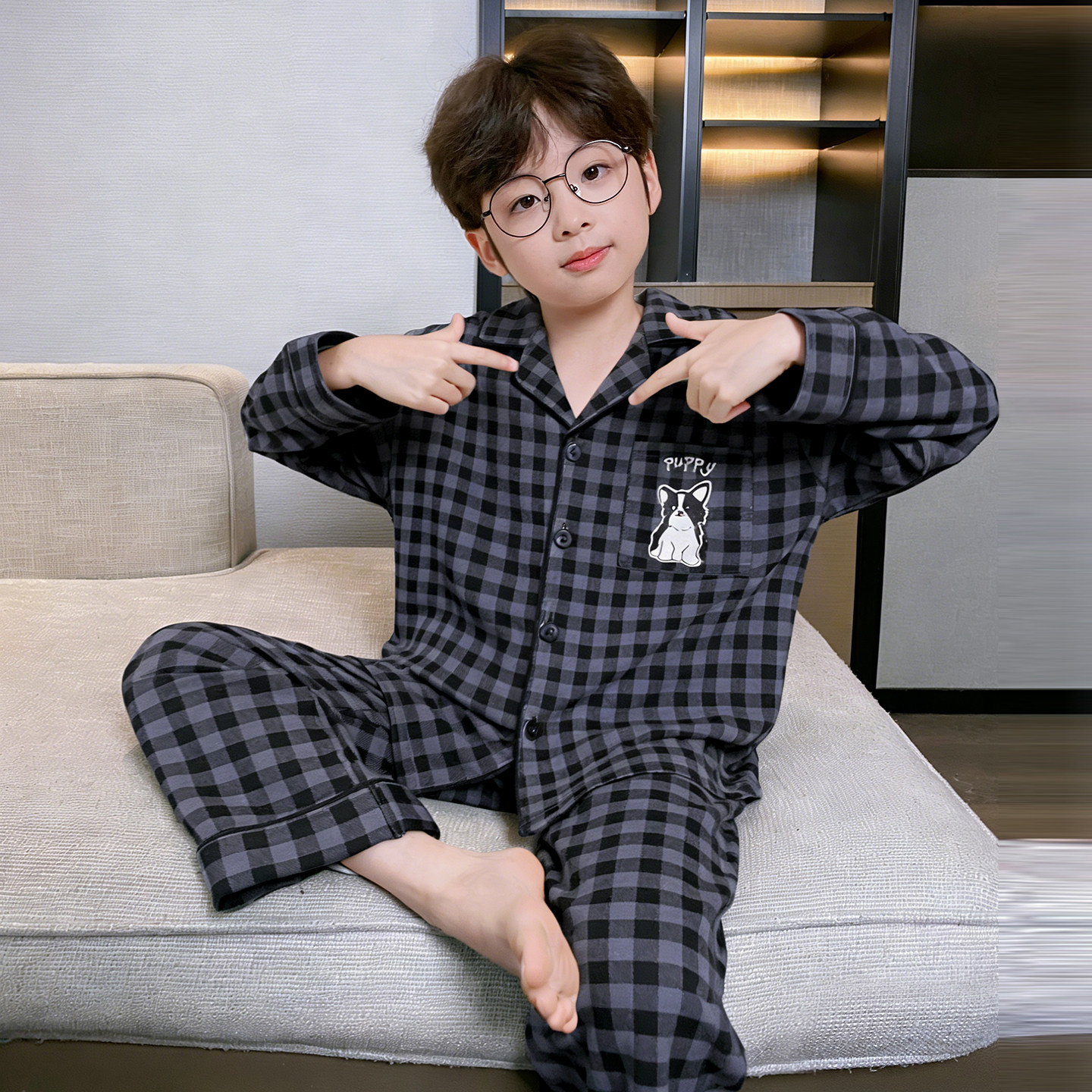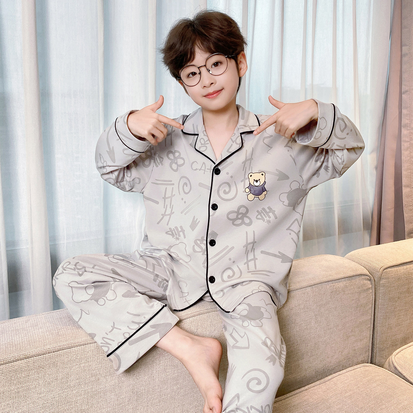 2026年新款男童睡衣长袖春秋季纯棉套头家居服小男宝宝中大童卡通