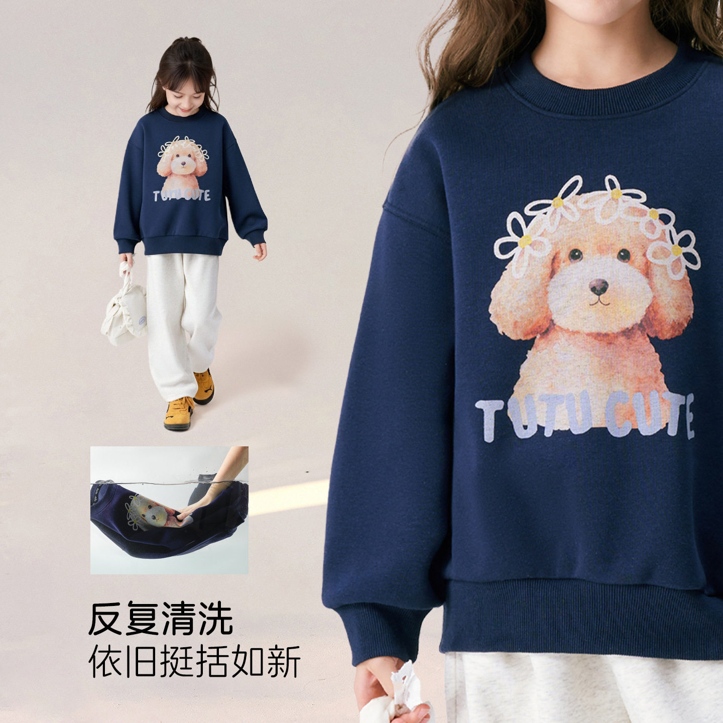 图图小象童装女童薄款卫衣2026春秋新款儿童卡通印花上衣圆领长袖
