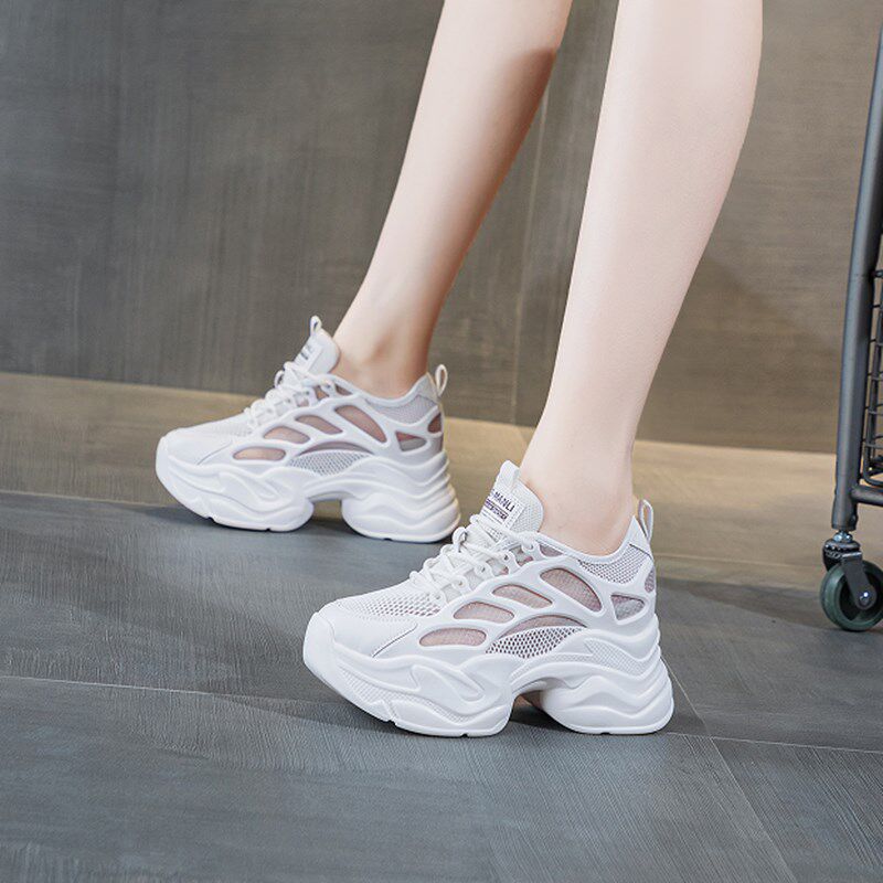 内增高女鞋小个子夏天穿的网鞋显高显瘦松糕厚底休闲运动鞋小白鞋