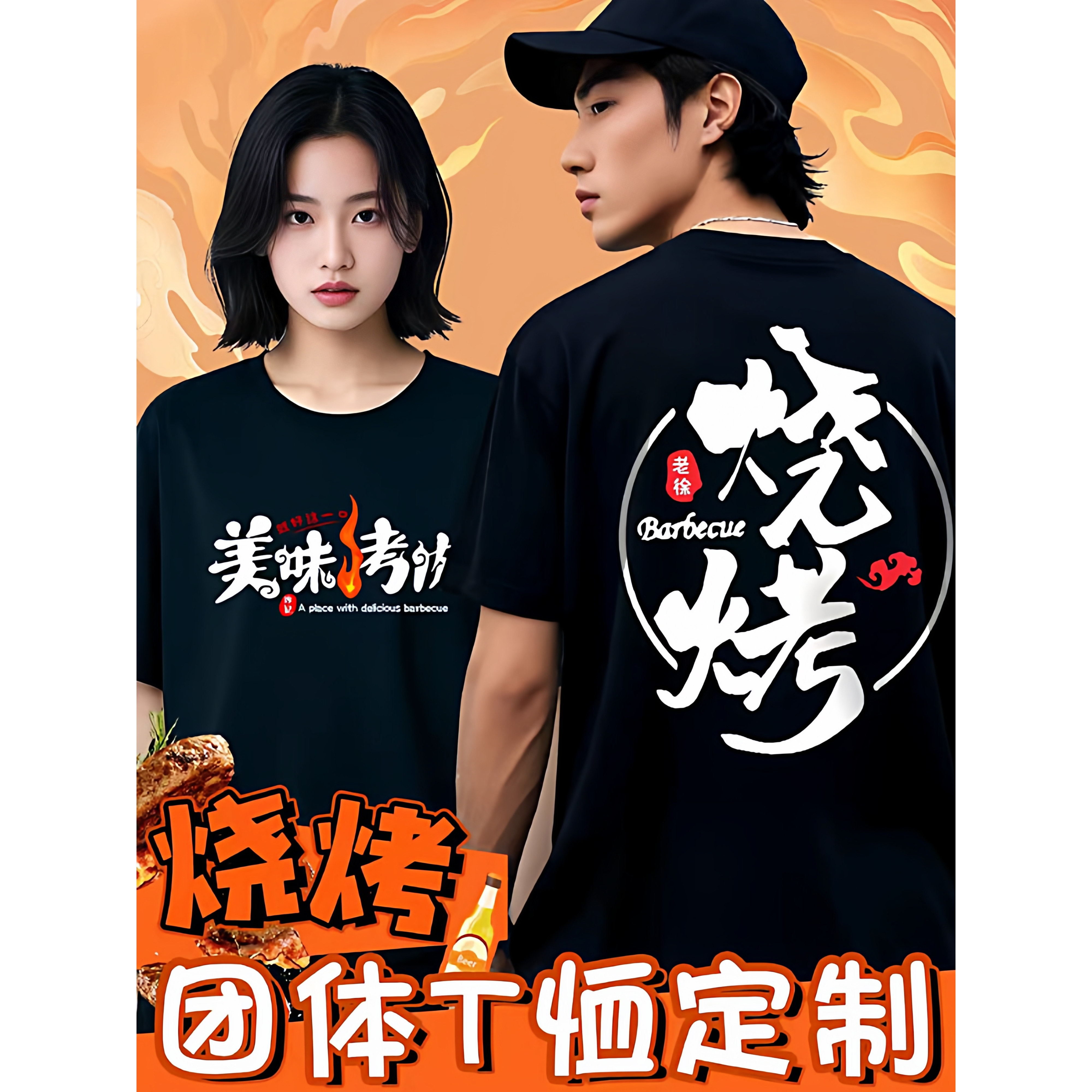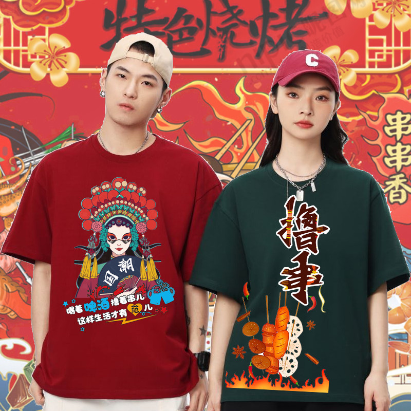 烧烤小龙虾店工作服短袖餐饮服务员火锅烤肉饭店冰丝速干T恤定制