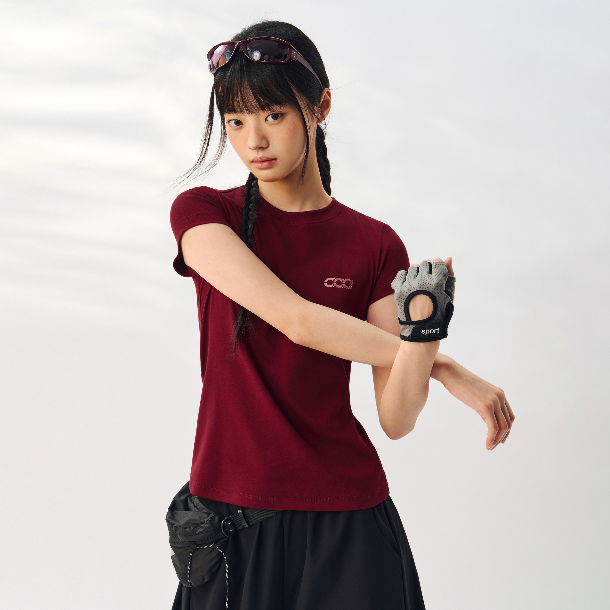 ATRY印花弹力短袖女款夏季新款休闲户外短款圆领T恤修身正肩上衣
