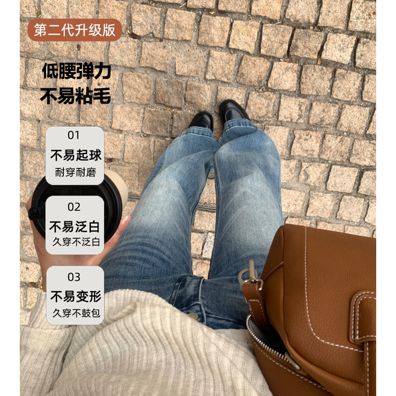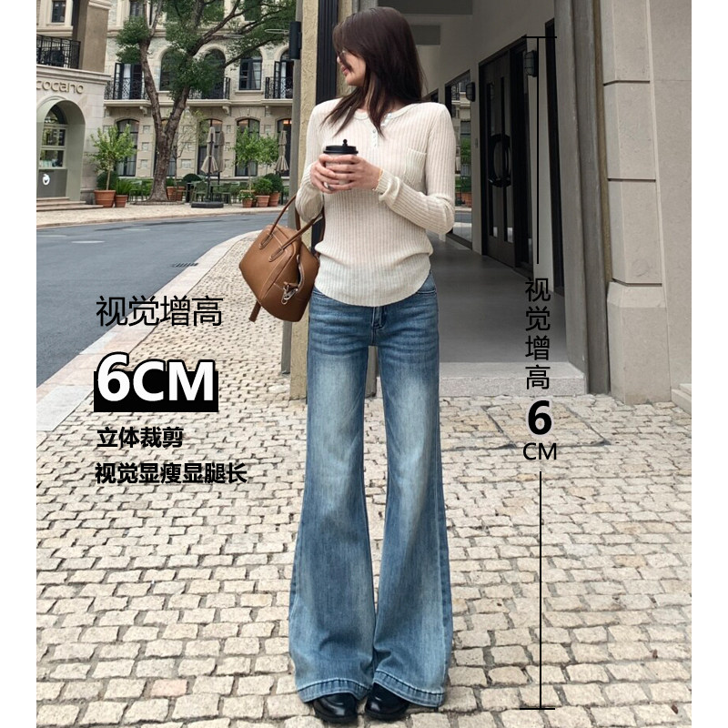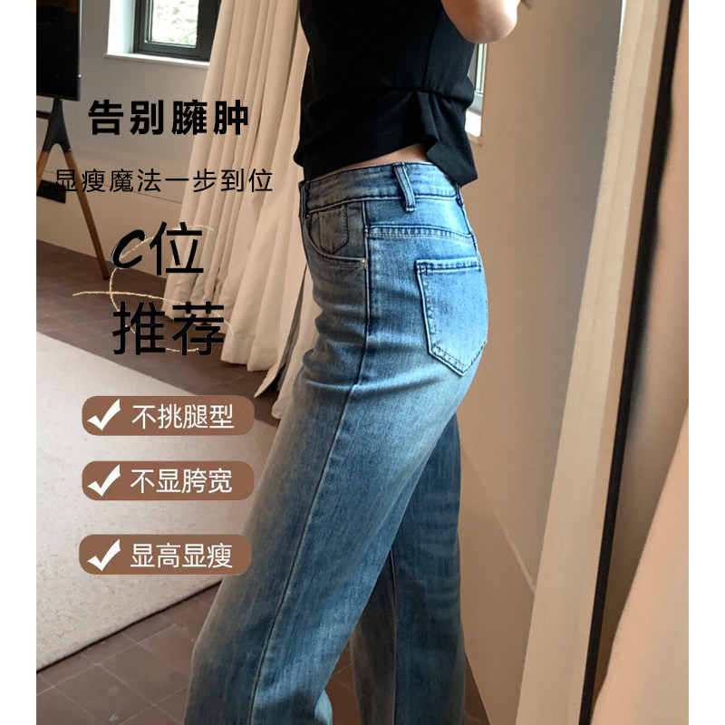美式浅蓝色低腰不贴腿微喇牛仔裤女2026春夏季新款小个子直筒裤子