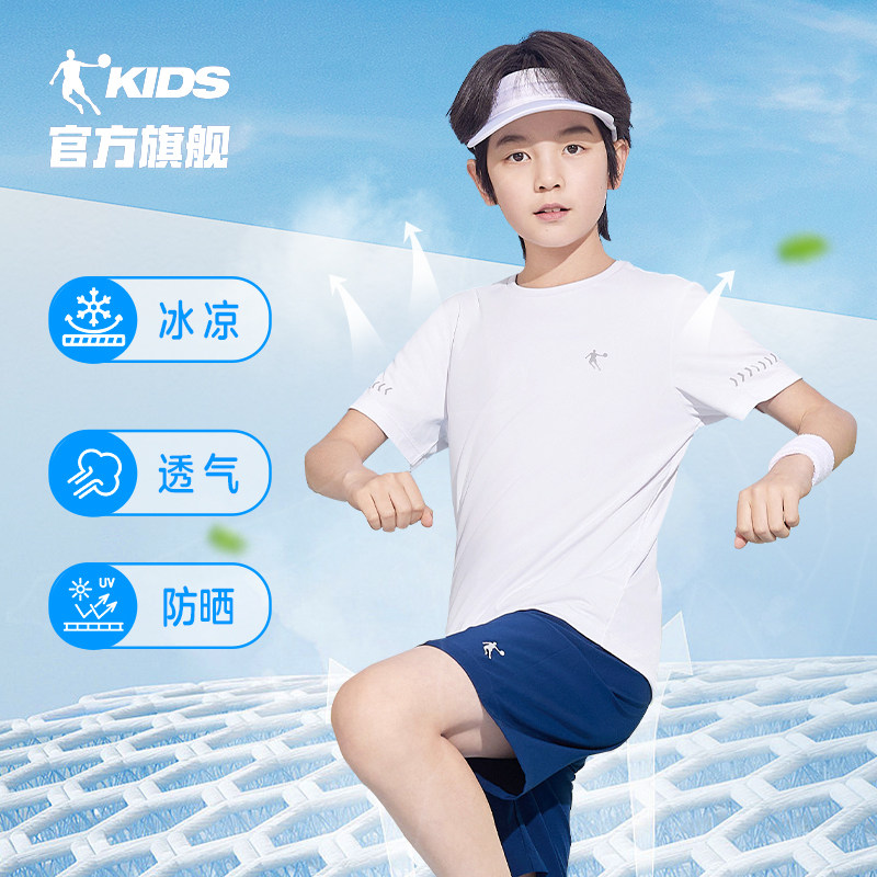 乔丹童装男童短袖T恤2026夏季新款儿童速干上衣白色运动夏装女童