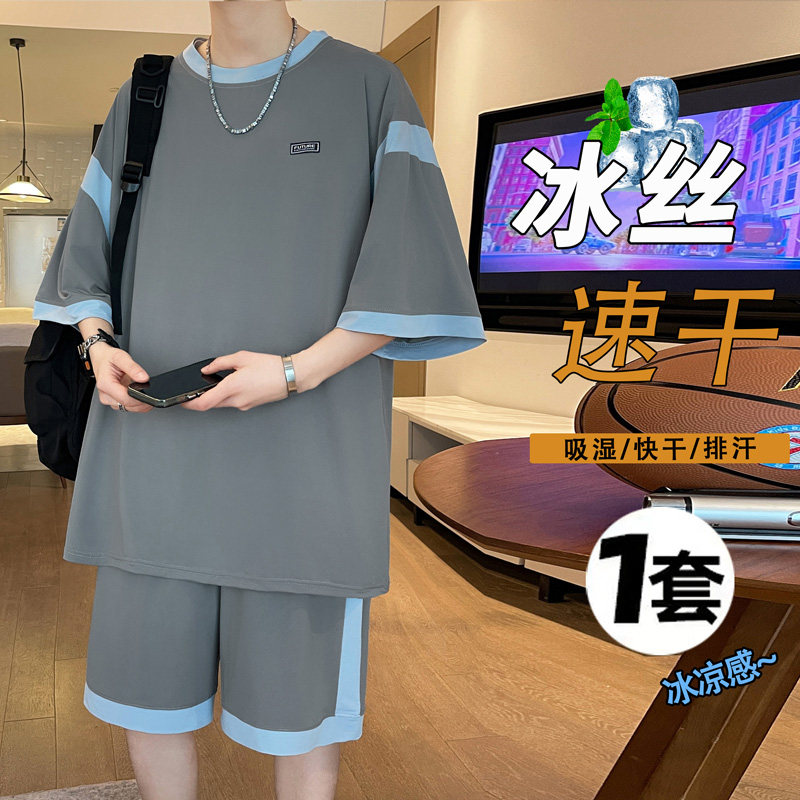 2026夏季新款冰丝短袖酷帅套装男生青少年初中学生休闲速干篮球服
