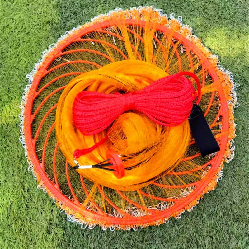 新款防锈加粗鱼线撒网飞盘式手抛网圆盘鱼网钢拉丝撒渔网加重铁链