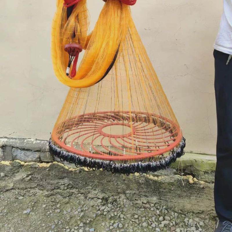 易新款钢拉丝大飞盘式撒网链条网加重铁链网手抛网超重全开撒网