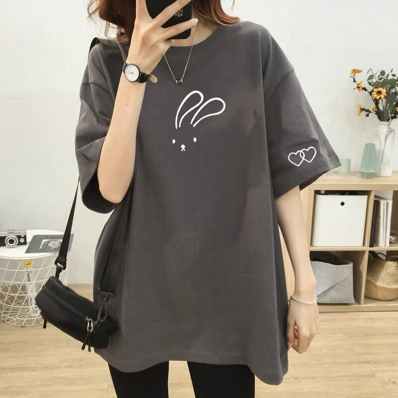 欧货爆款别致纯棉印花t恤女短袖2026夏季新款宽松大码中长款上衣