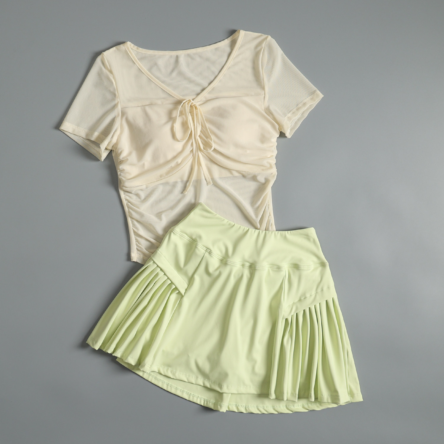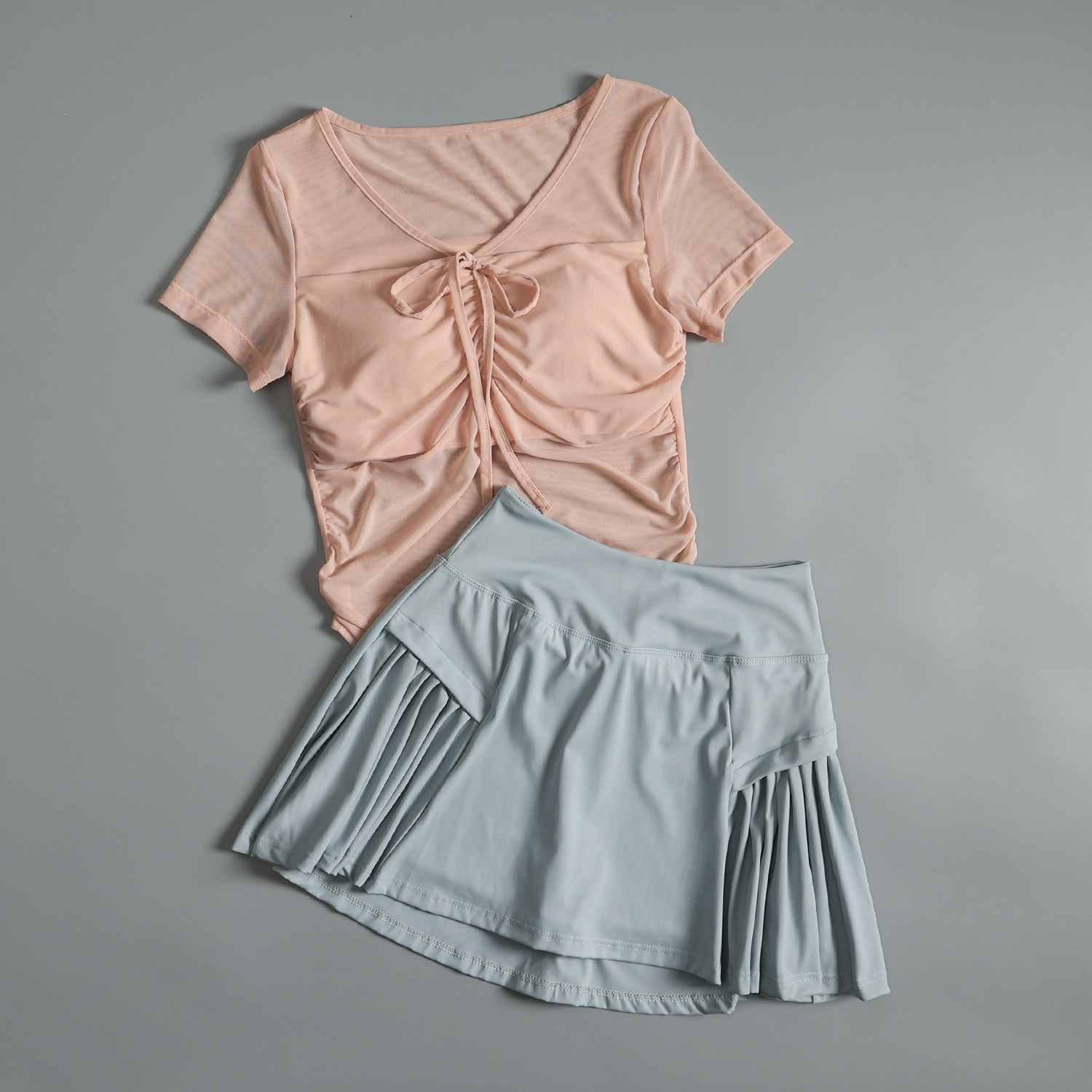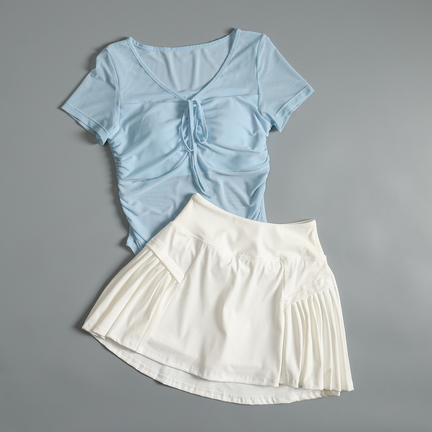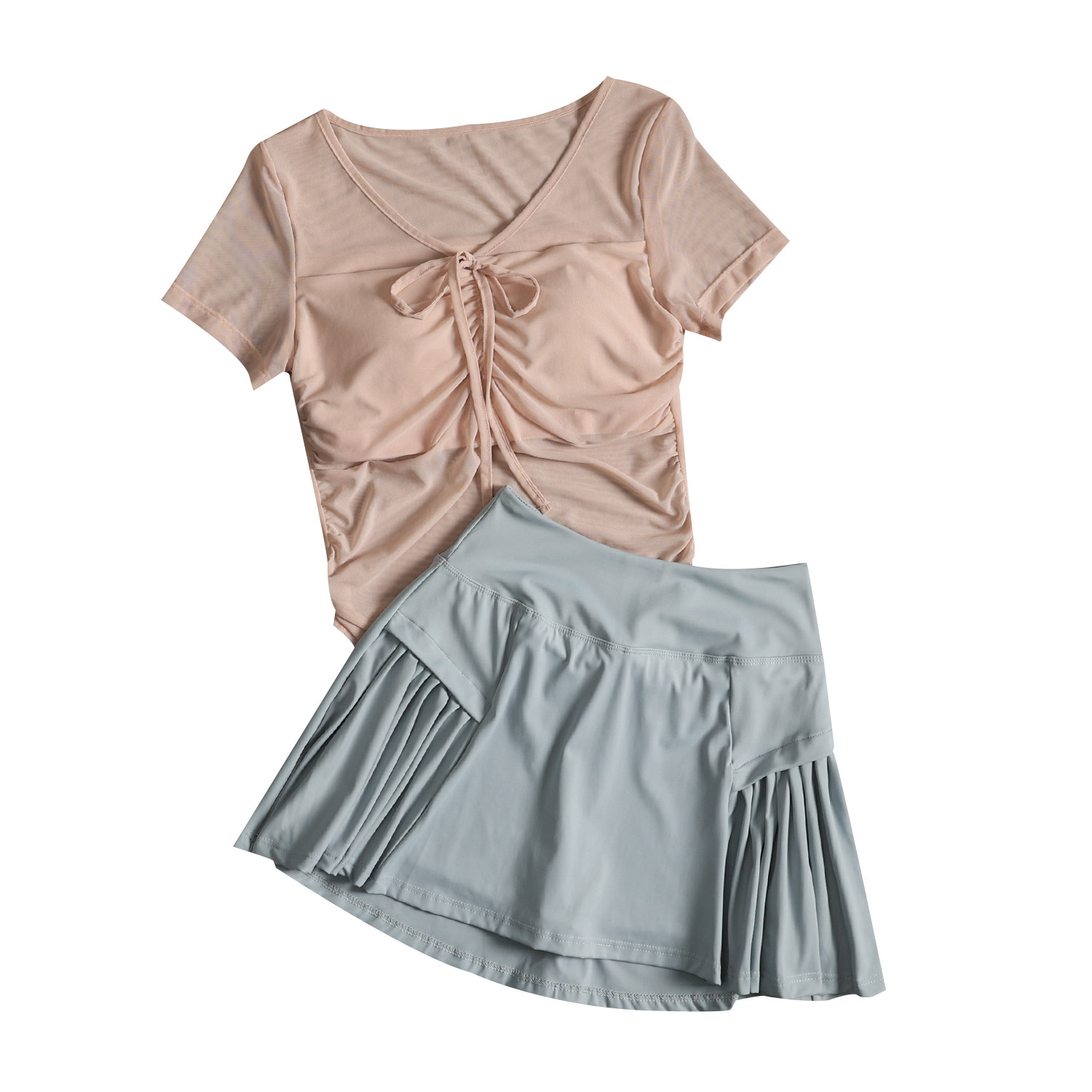 高颜值网球健身套装女夏网纱薄款瑜伽短袖修身显瘦跑步运动速干服