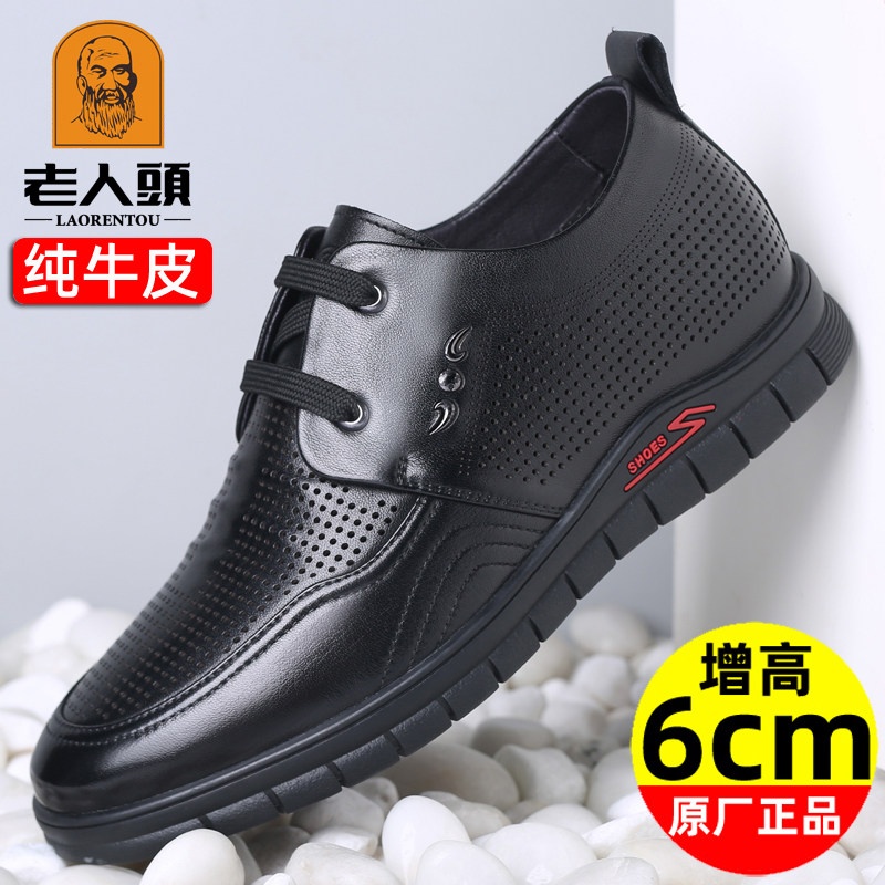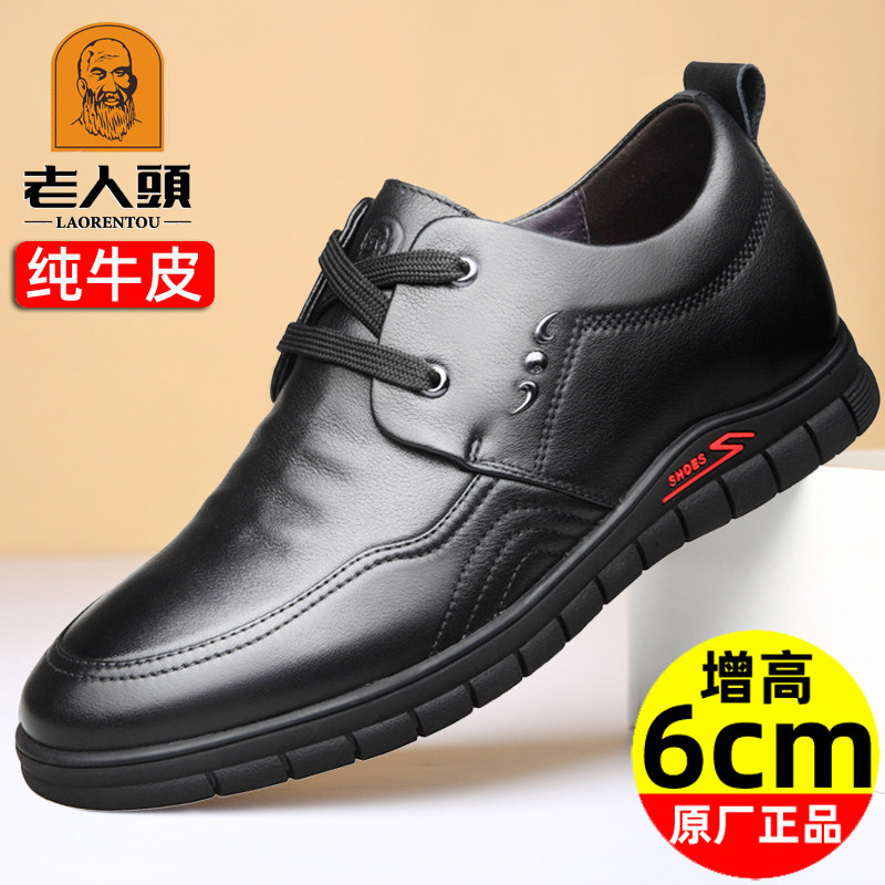 老人头皮鞋男真皮头层牛皮透气商务休闲爸爸鞋隐形内增高6cm男鞋
